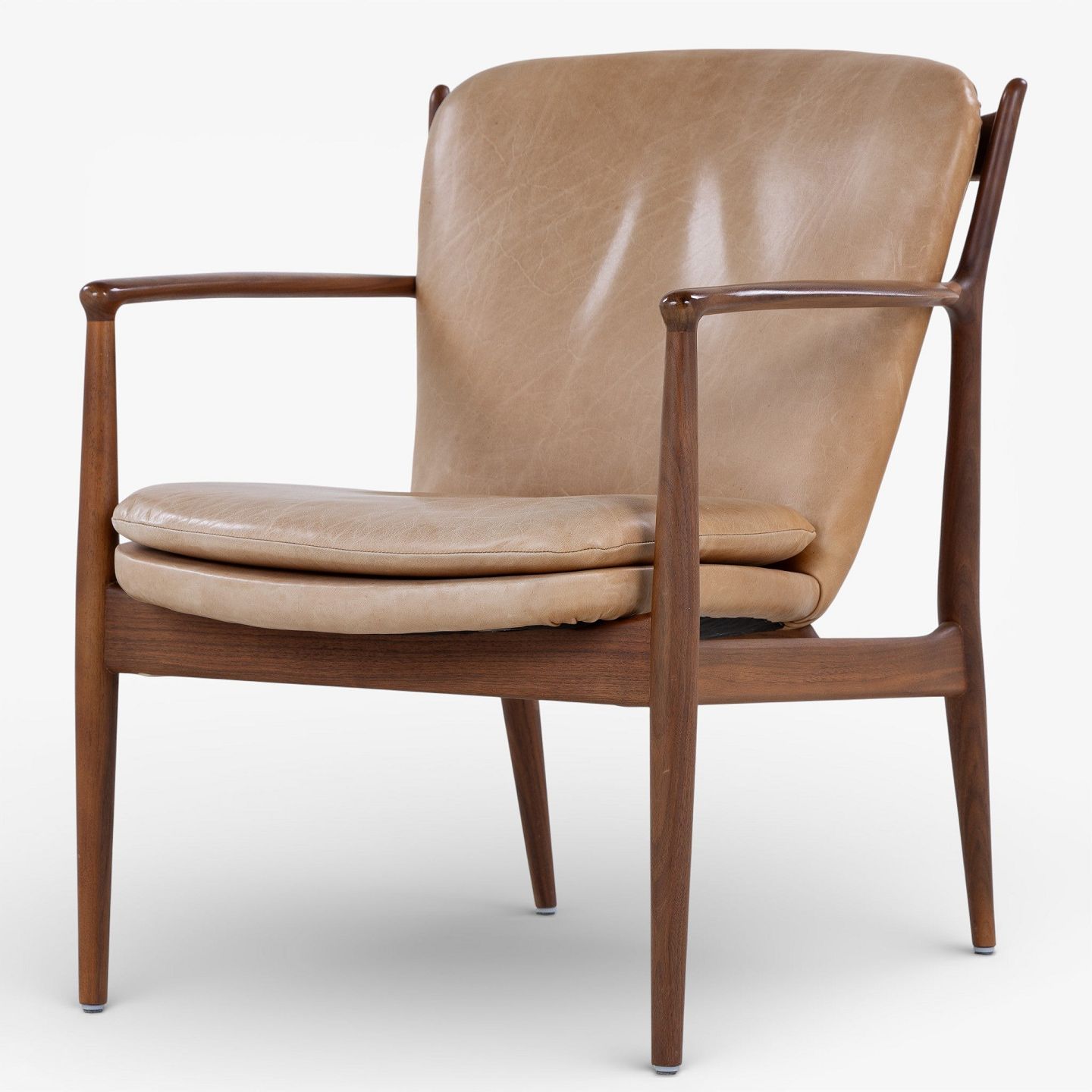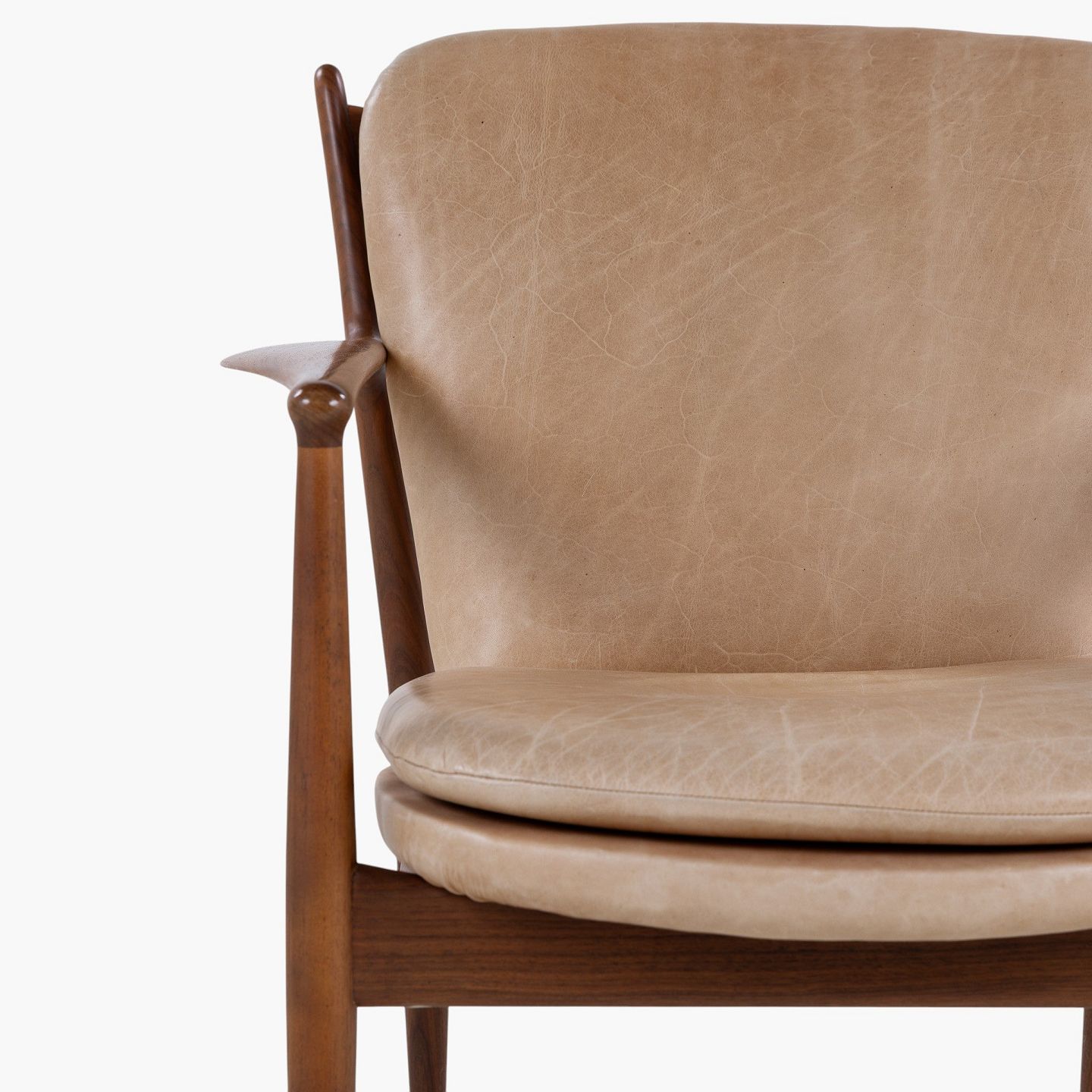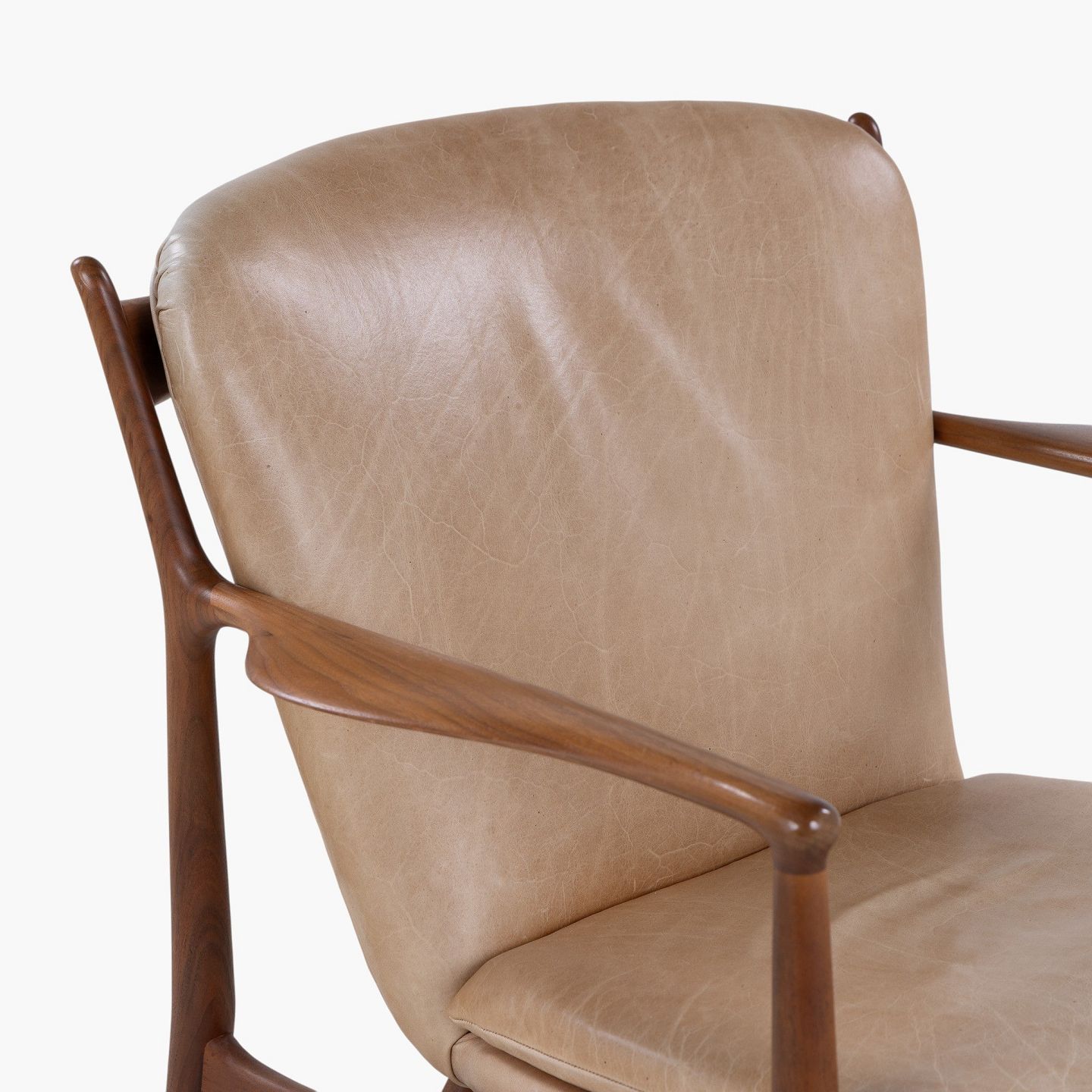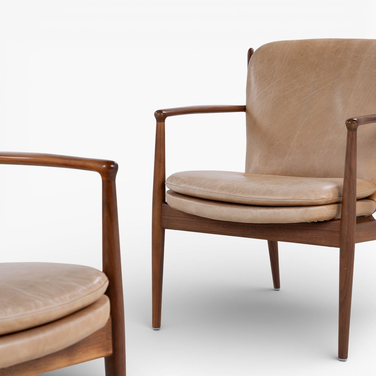 FJ 51 - Pair of 'Delegate Chair' armchairs in walnut and patinated natural leather. Designed in 1951.