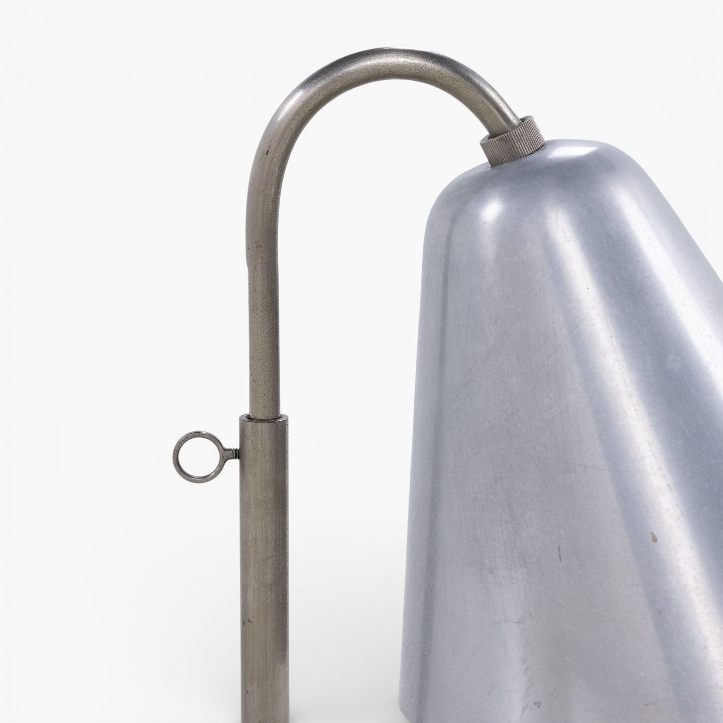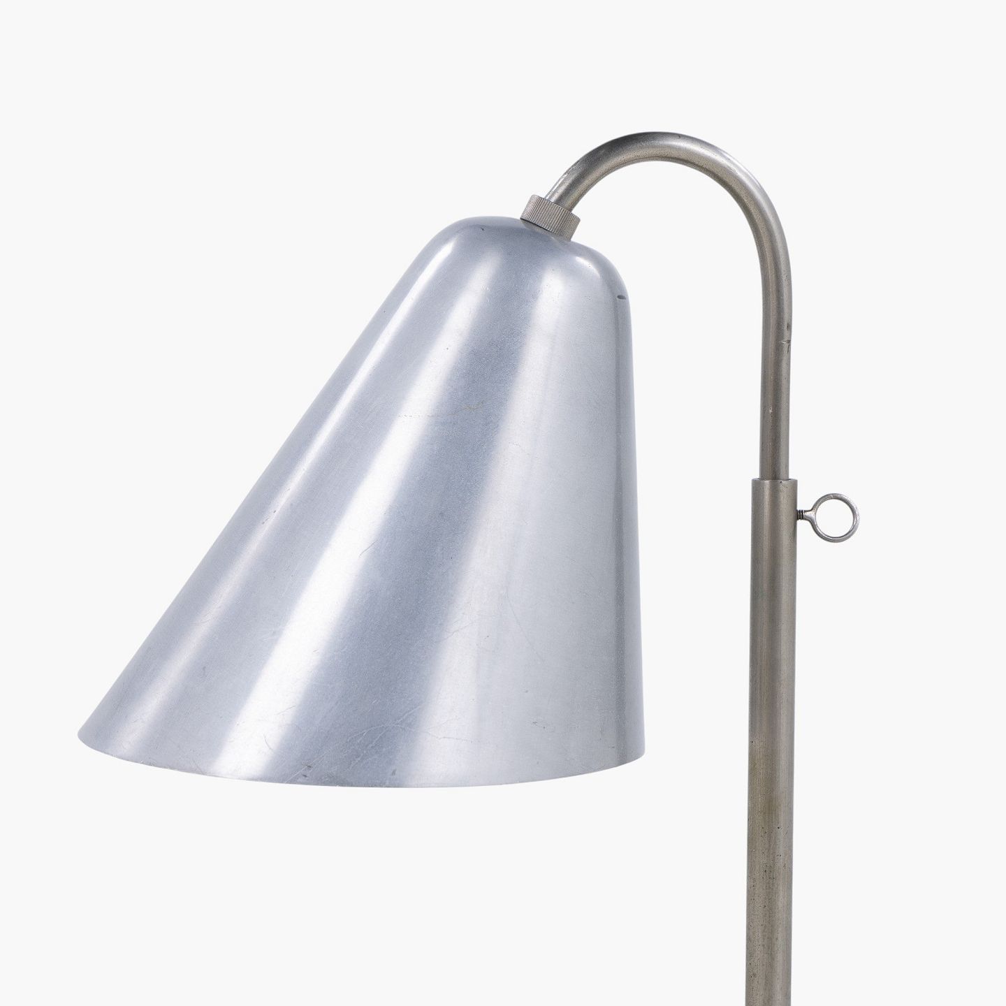 Rare table lamp in nickel-plated metal with funnel-shaped shade. Made in the 1930s.