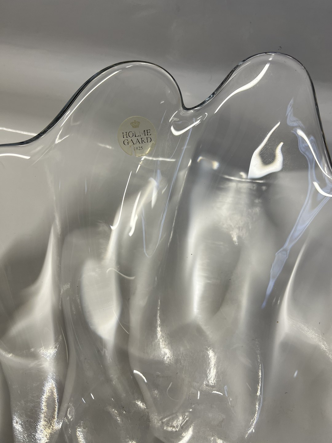 Glass dish from Holmegaard glassworks, natural. Beautiful organic design and solid quality.