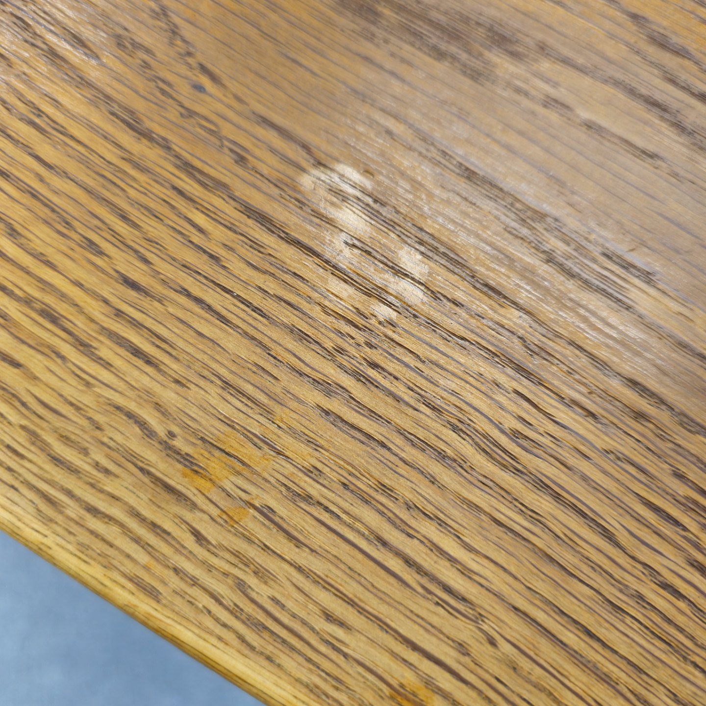 Fremstår med brugsspor på benene og en misfarvning ved kanten