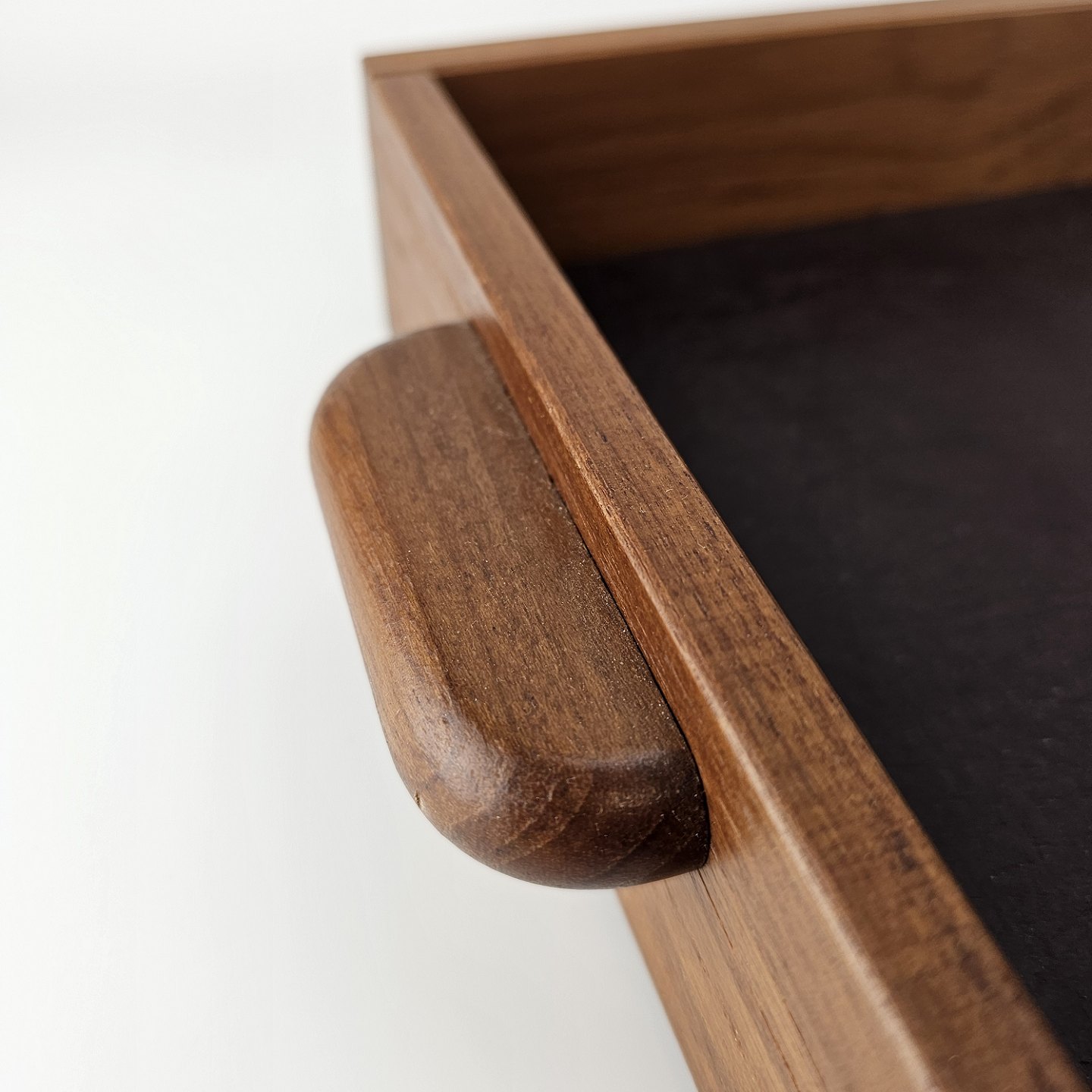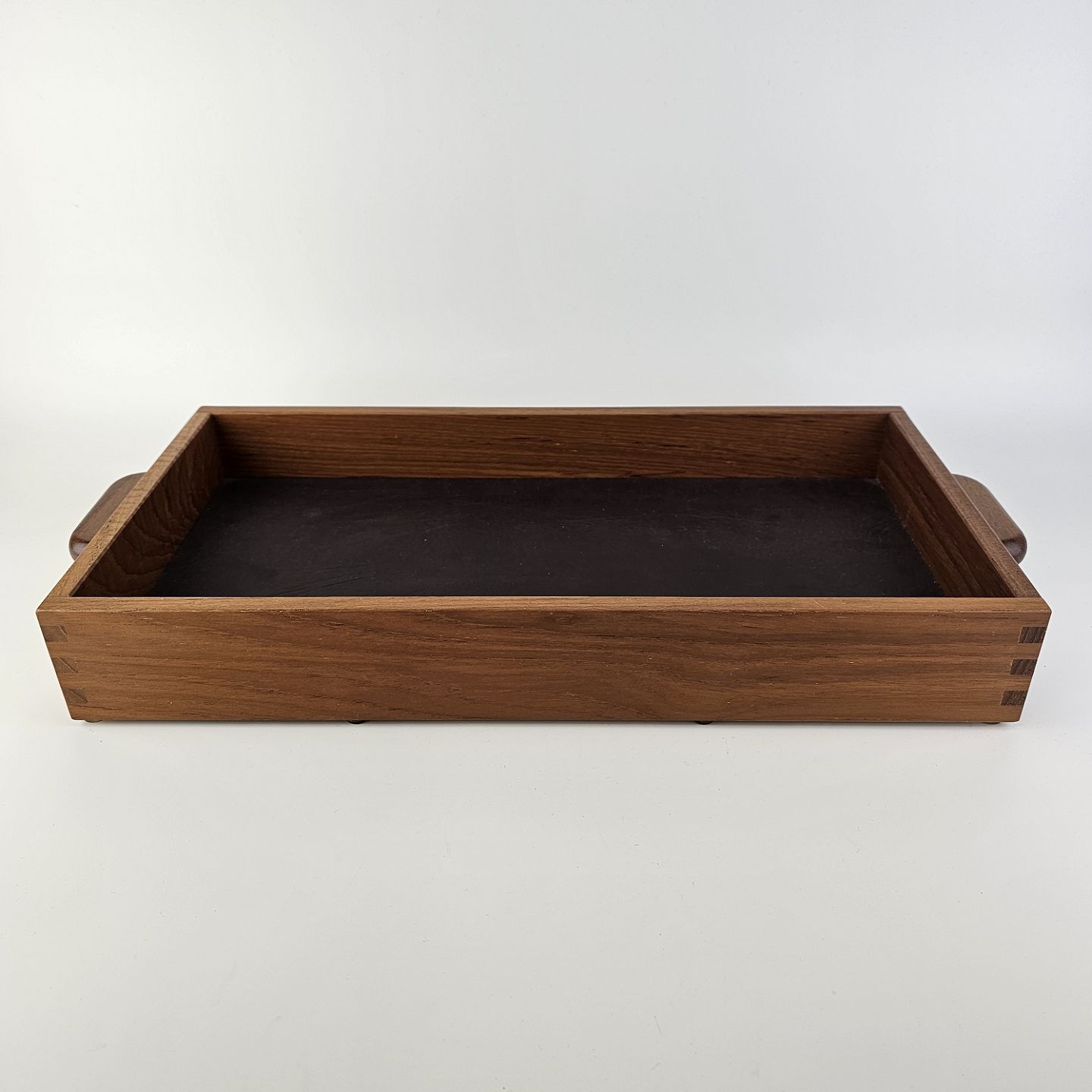 Bakke i teak træ med læder i bunden