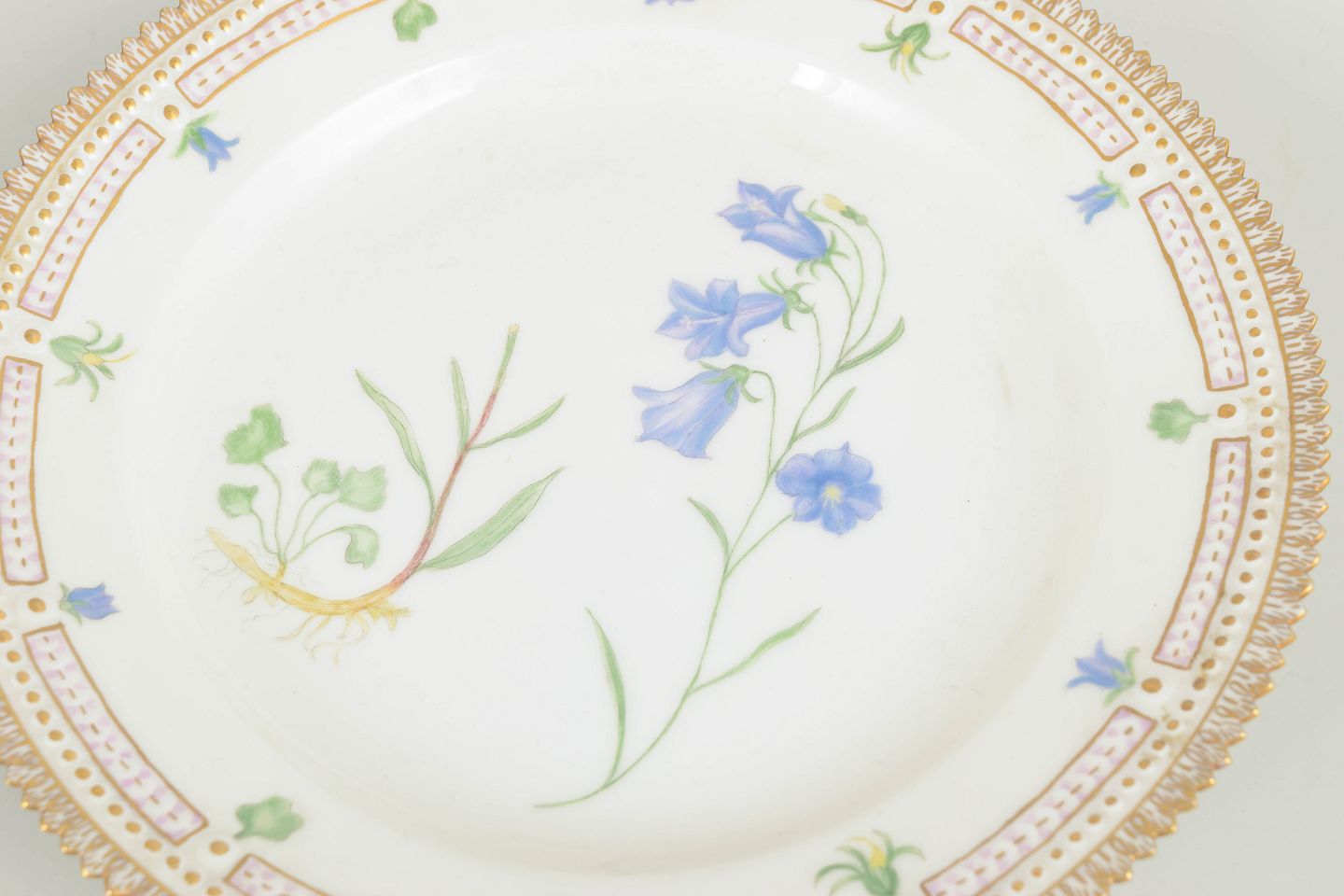 Lunch plate from the Flora Danica service with hand-painted botanical decoration based on original illustrations from the Flora Danica work. Classic form with a richly gilded border.