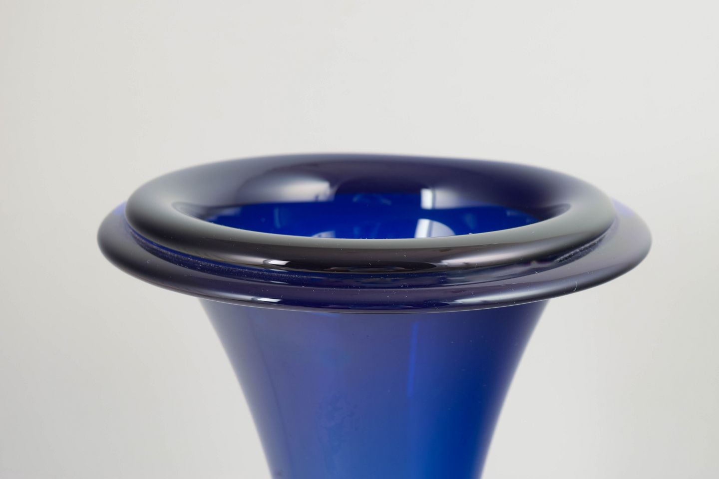 Josef Riedel and the Polaun works are among the most respected producers of Czech art glass from the first half of the 20th century. During the 1930s and 40s, the Art Deco style was expressed through bold forms and rich colours, often executed in heavy, mouth-blown glass. Trumpet vases such as this combine functionality with sculptural presence and are highly sought after by collectors today.