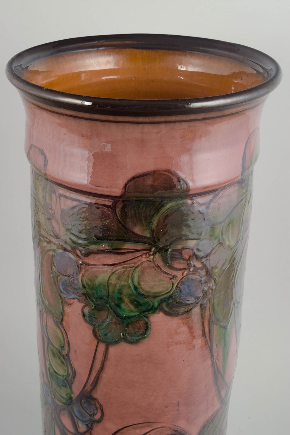 During the 1930s, Kähler experienced a creative peak, interpreting the Art Deco style through both form and surface decoration. The period is defined by monumental shapes, rich glazes and hand-painted ornamentation, often inspired by organic and floral themes. Large floor vases such as this were produced in limited numbers and are today considered among the most desirable works from Kähler’s interwar production.
