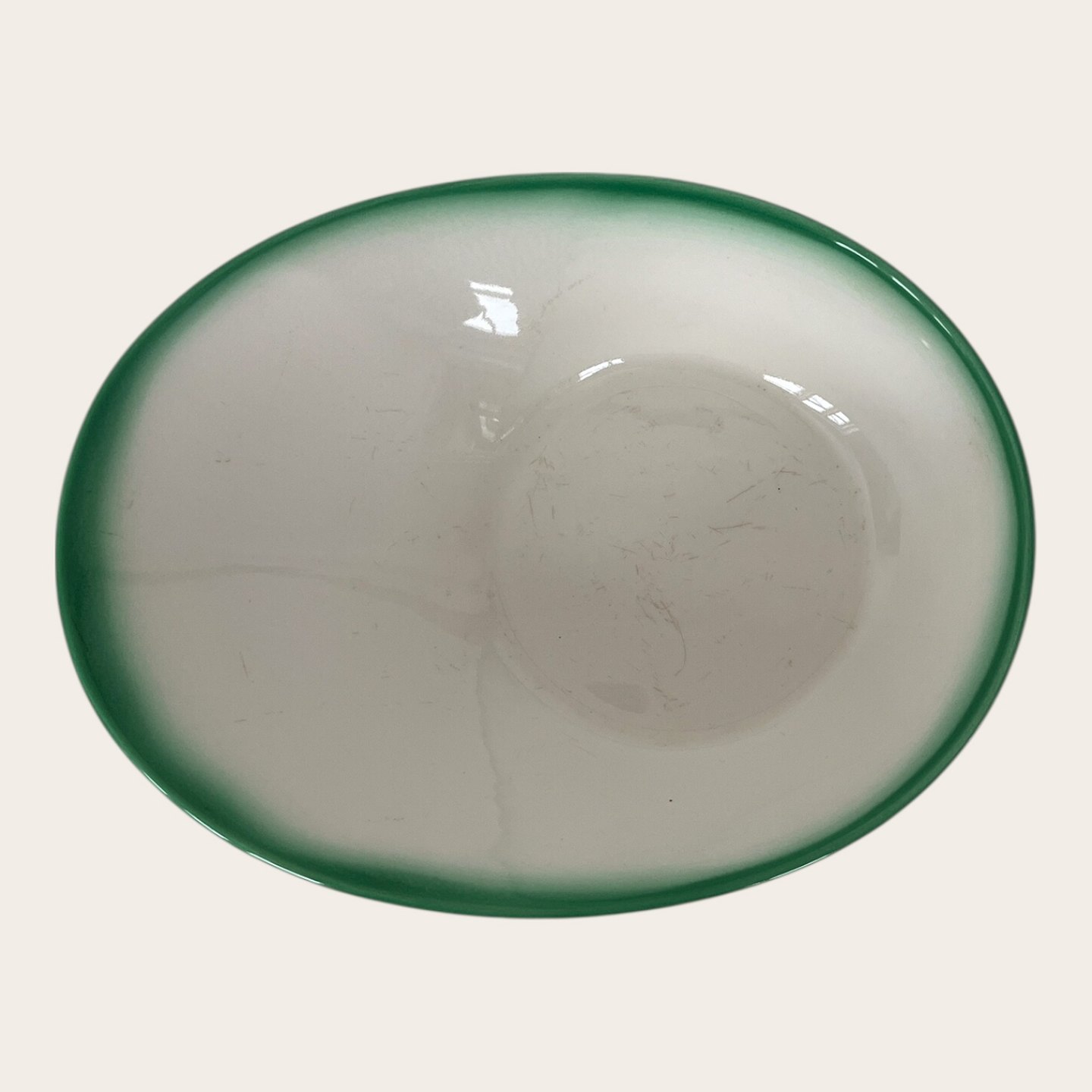 Royal Copenhagen / Aluminia, Ursula #577, Asymmetric green/white bowl, 1st grade, 23.5cm long, 18cm wide, 6cm high, Design Ursula Munch Petersen *With traces of use*