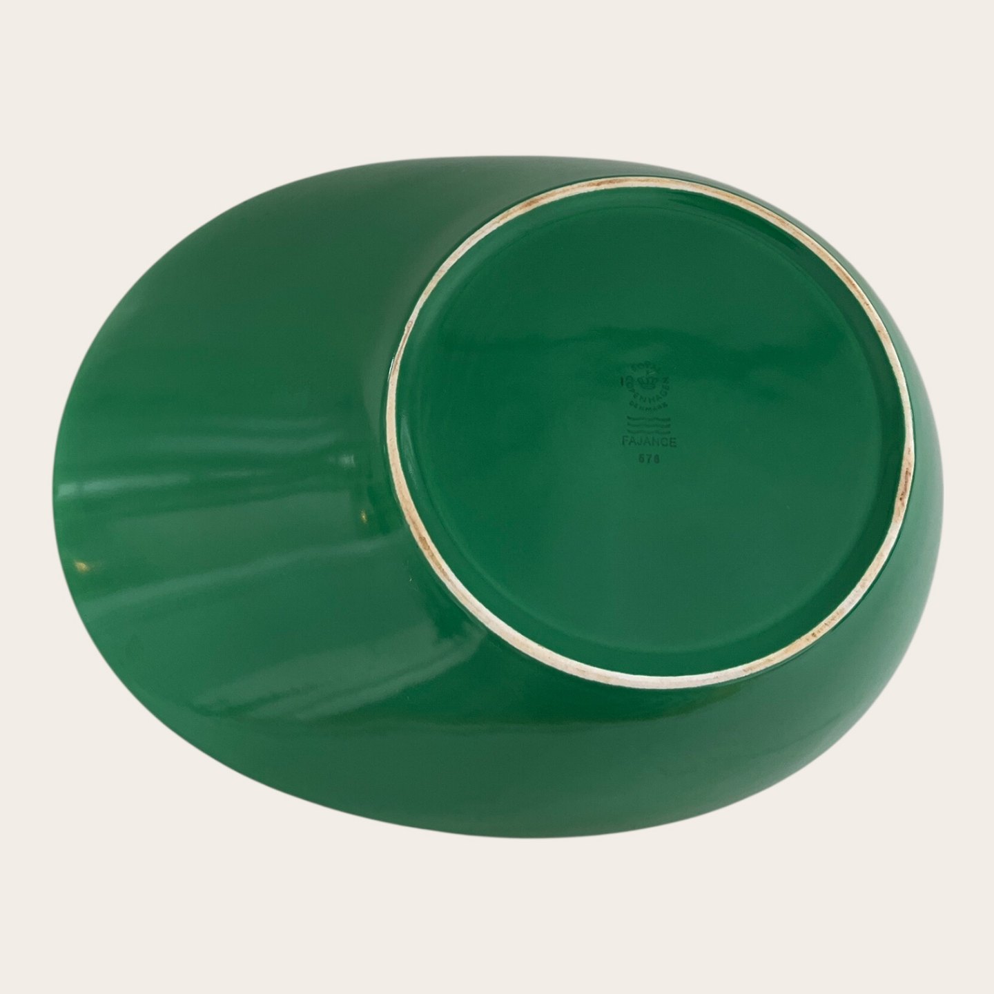Royal Copenhagen, Aluminia, Ursula, Asymmetrical bowl, Green / white, 1st grade, 30.5cm long, 24cm wide, 8cm high, Design Ursula Munch Petersen *With traces of use*