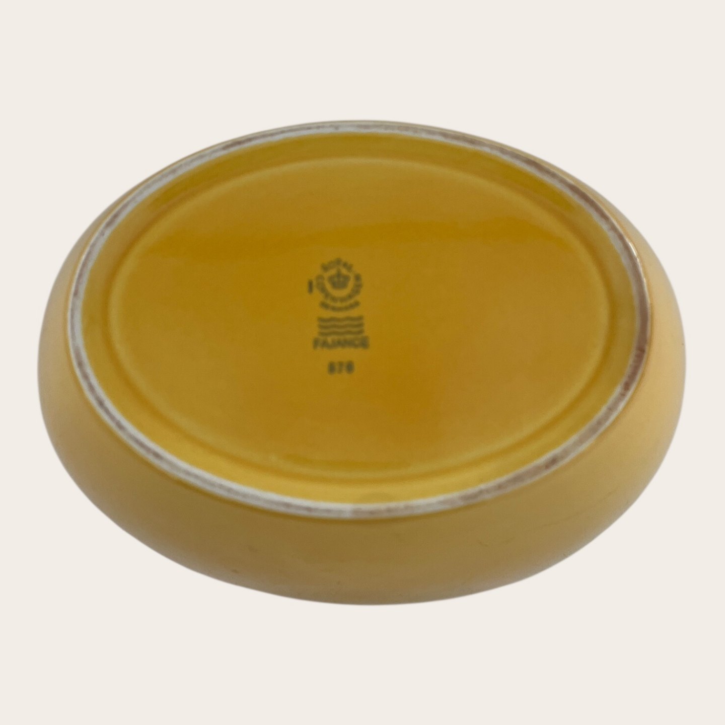 Royal Copenhagen, Aluminia, Oval bowl, Yellow #576, 21cm long, 15cm wide, 11cm high, Design Ursula Munch Petersen *Good condition*
