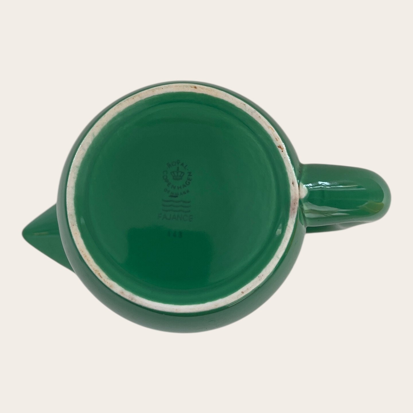 Royal Copenhagen, Aluminia, Ursula, Jug with handle, Green #143, 1st sorting, 16cm high, 21cm wide, Design Ursula Munch Petersen *Good condition* (See also lid for the jug item no. 629129)
