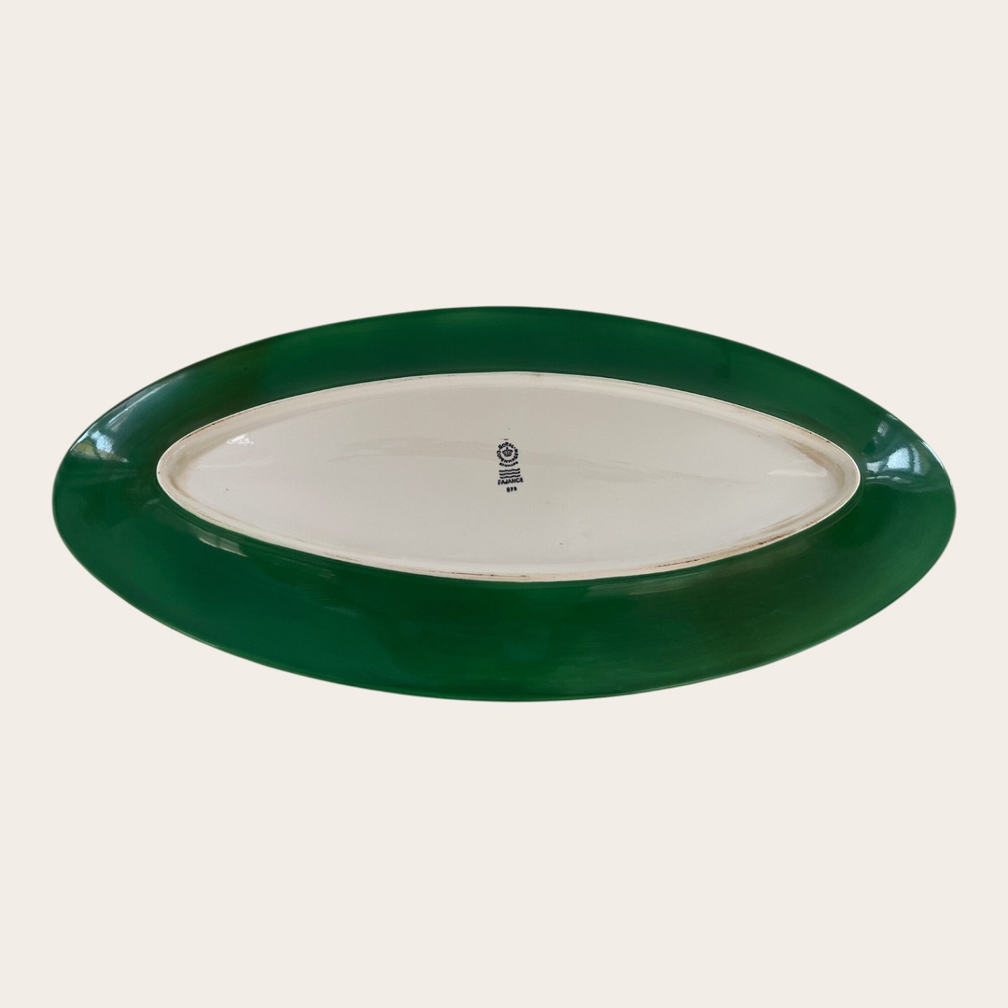 | Royal Copenhagen, Aluminia, Ursula, Stort fad, Grøn/ hvid #375, 57,5cm lang, 26cm bred, Design Ursula Munch Petersen *Pæn stand med lettere brugsspor*