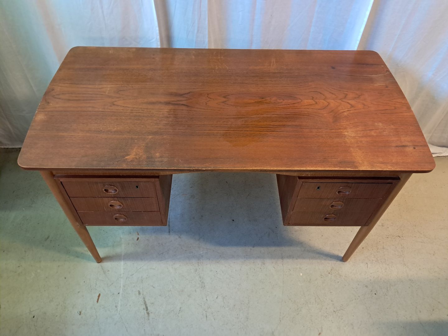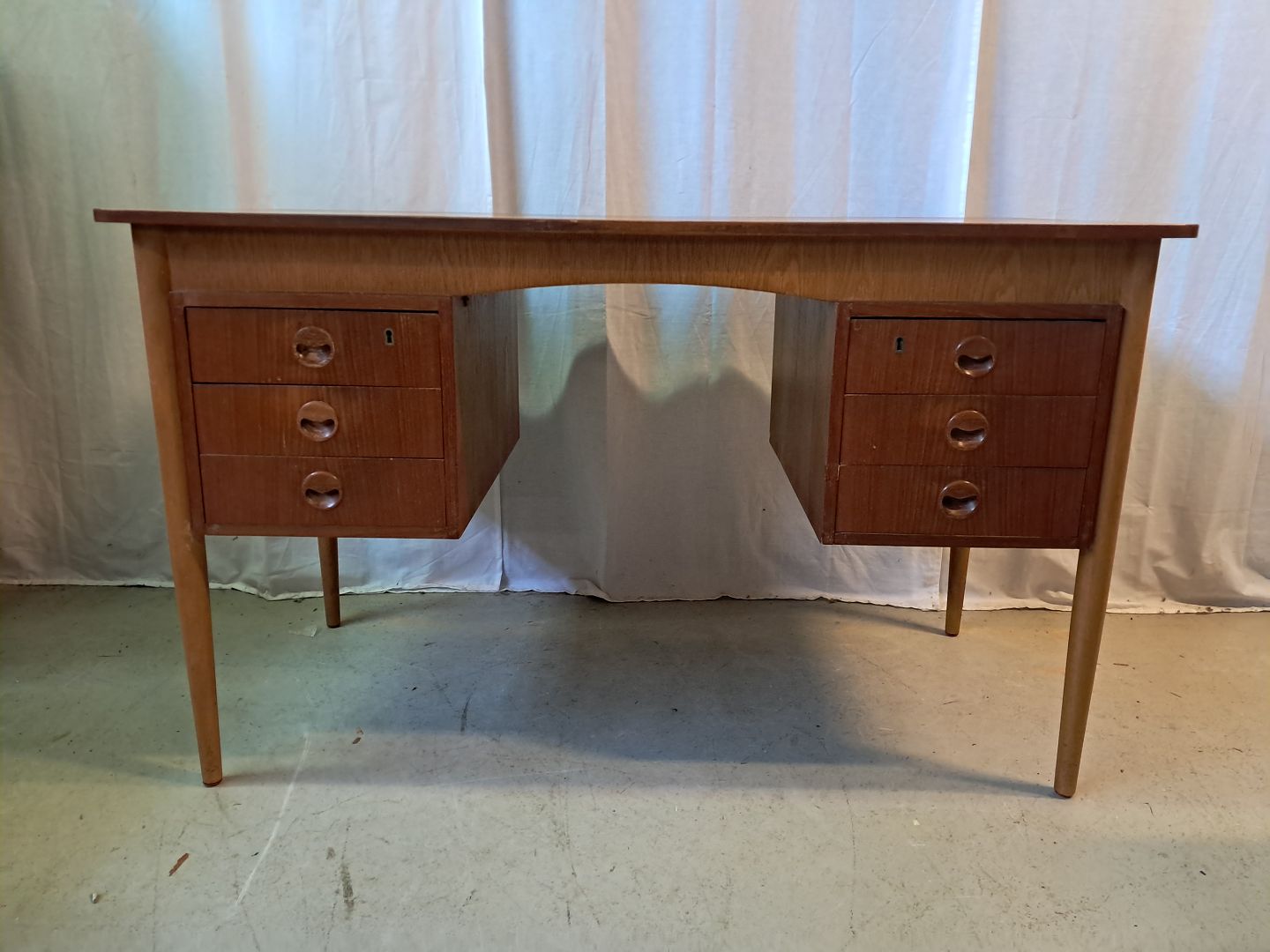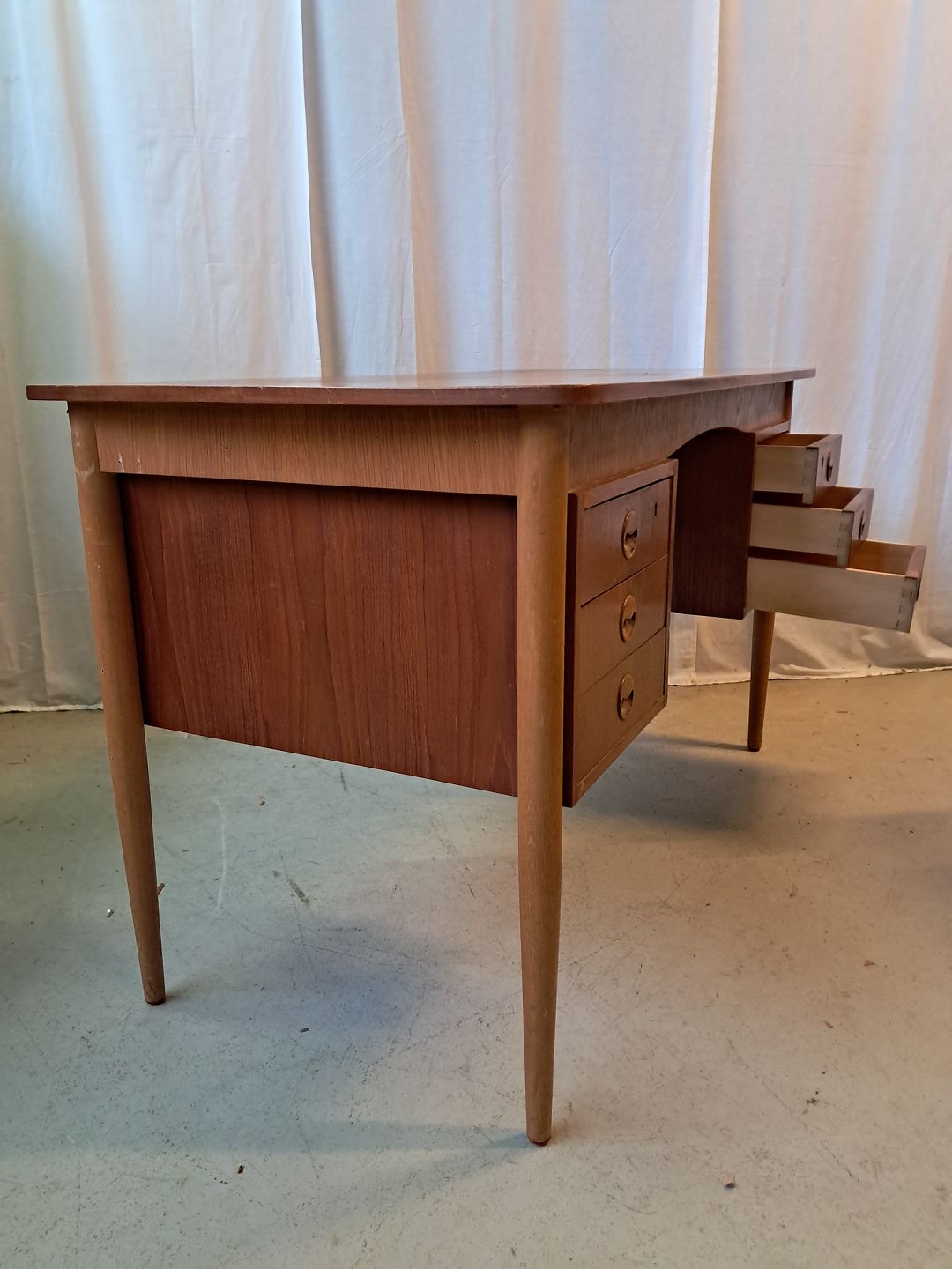 Skrivebord i fineret teaktræ, fra 1960erne.