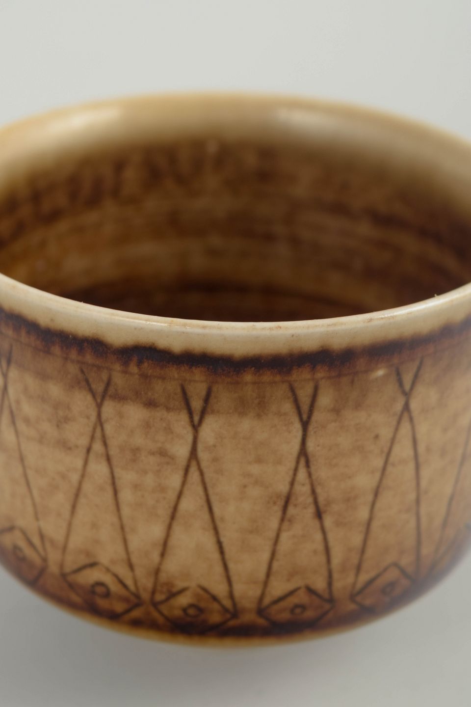 Höganäs Keramik has a long-standing tradition in Scandinavian stoneware, where wheel-thrown technique, functional forms, and decorative surfaces are key elements. During the 1970s, many works featured repeated patterns and hand-incised decoration combined with warm, earthy glazes, giving these pieces a clearly period-specific character that remains attractive to collectors today.