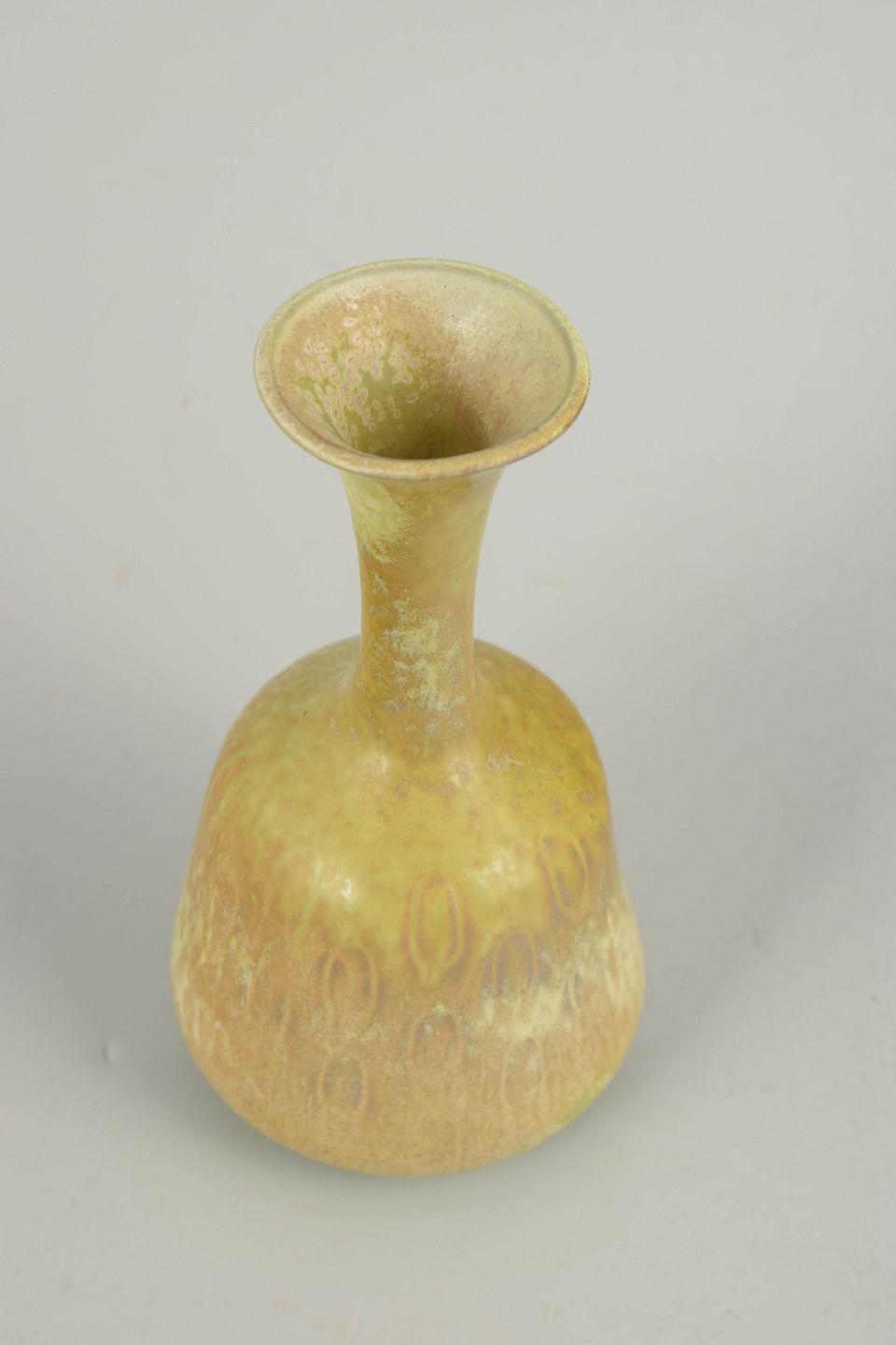 Elegant and well-balanced stoneware vase with a soft, organic silhouette. Finished with a characteristic light, speckled glaze in cool bluish and cream tones, typical of Gunnar Nylund’s production at Rörstrand in the mid-20th century. Harmoniously proportioned with a gently flared rim.