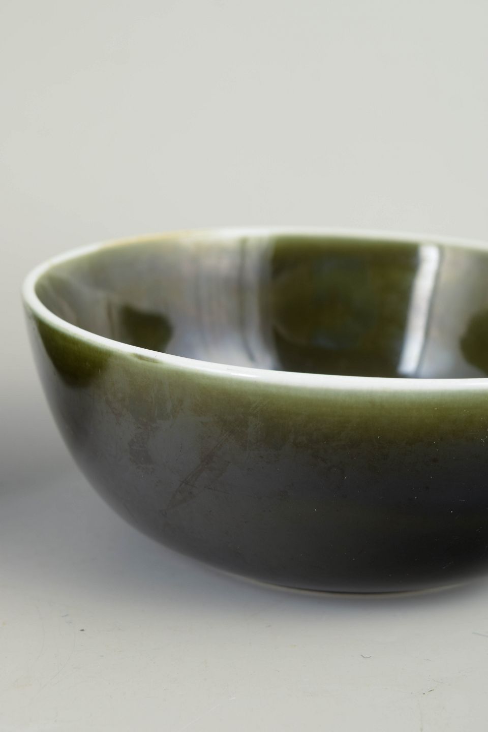 Set of four stoneware bowls from the Vardag series with a characteristic green glaze. Simple, functional forms designed for everyday use, expressed in a calm and timeless Scandinavian modernist style.