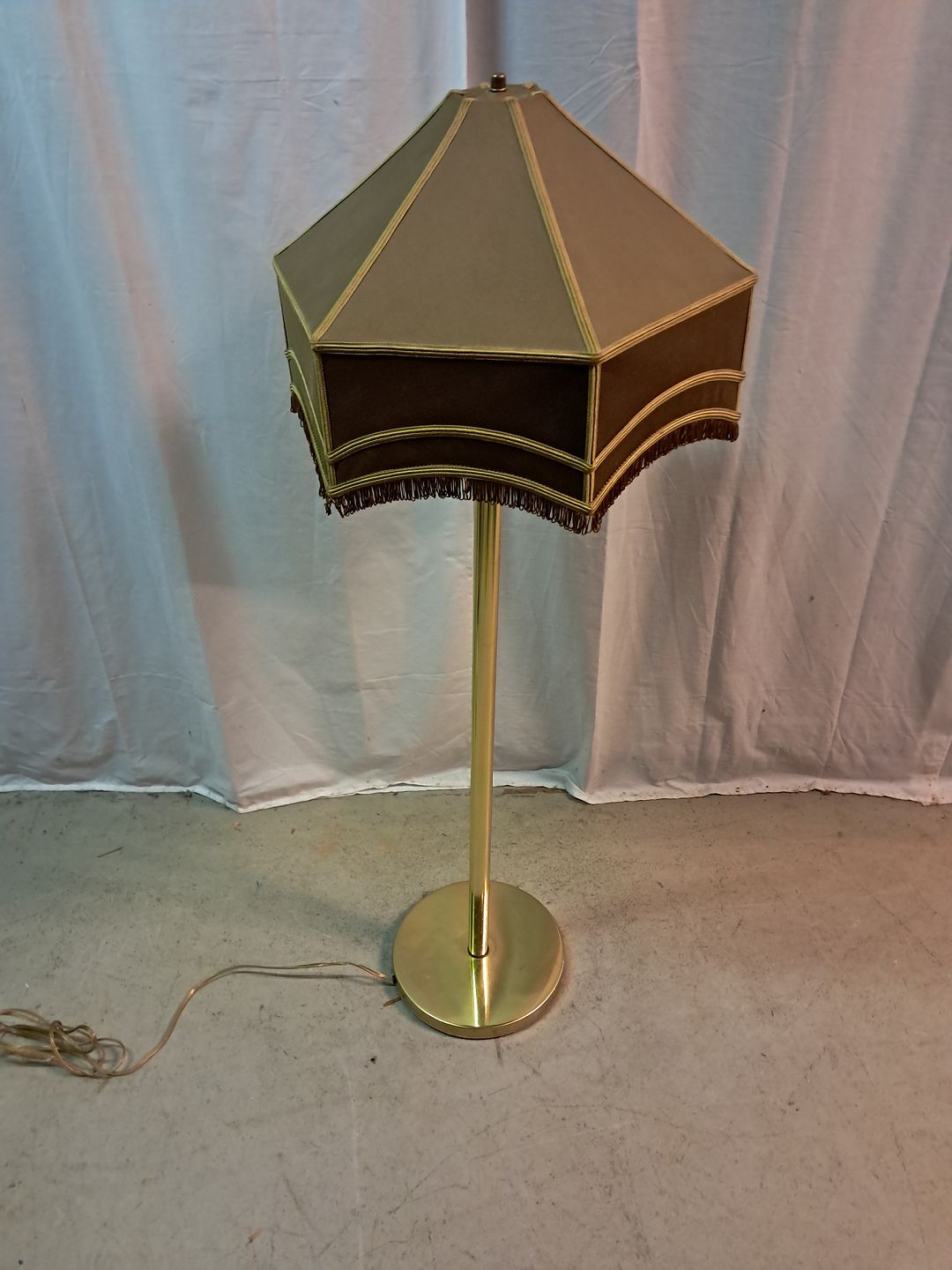 Gulvlampe i metal med lampeskærm, fra 1990erne.