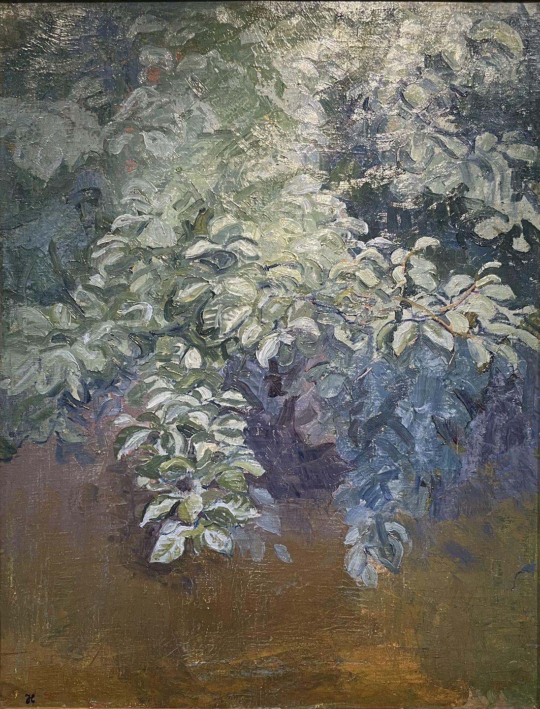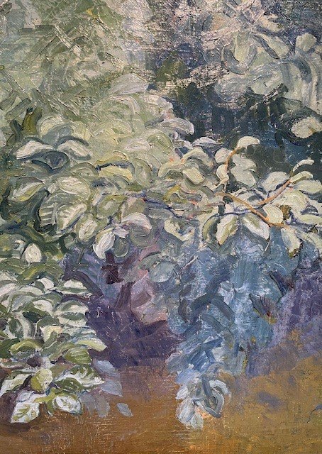"Beech by a River" Oil painting, an early work, possibly the artist's wife Alhed Larsen 1872-1927 was involved in the process of creating this rare work.