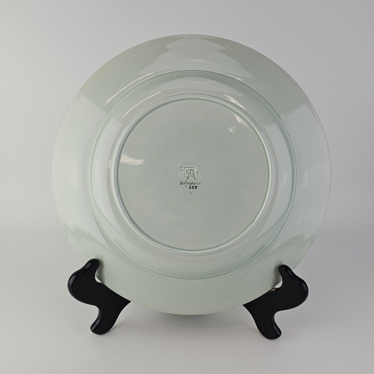 Stel i lysegrøn fajance med natur dekoration og flettet kant