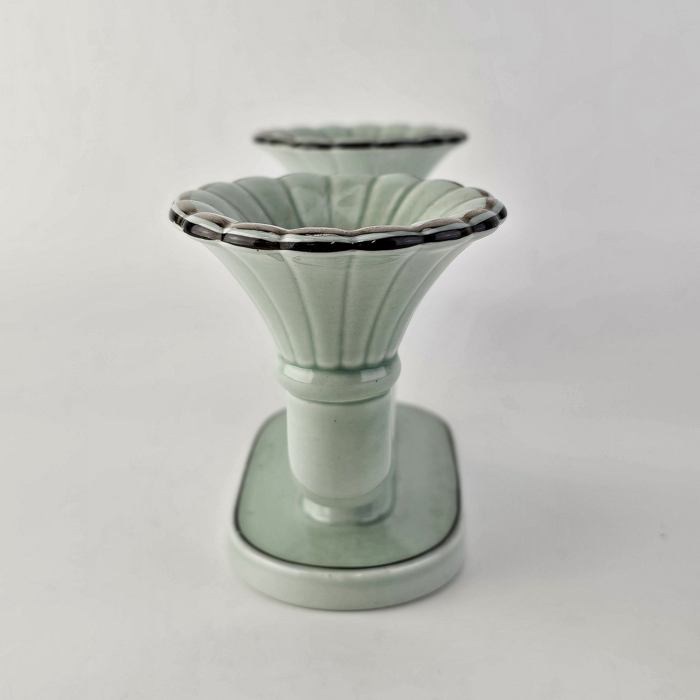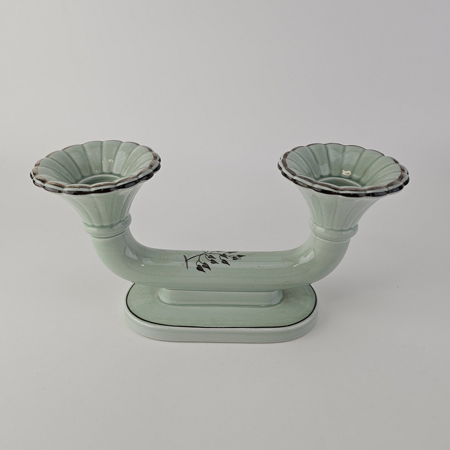 To-armet lysestage i fajance fra stellet Morgenfrue