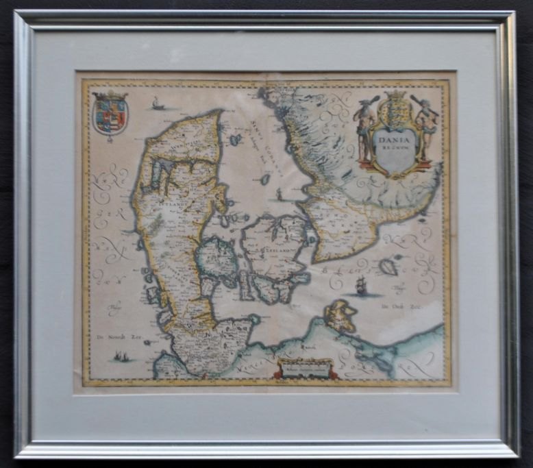 Willem Janszoon Blau (1571 - 1638) Netherlands: General map of Denmark. 1634. Copperplate engraving, hand-colored. Unsigned. 28 x 33 cm.