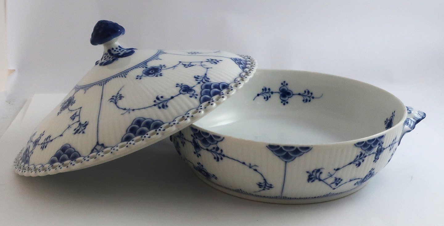 Royal Copenhagen. Blue fluted, full lace. Covered dish, rund. Modell 1128. Durchmesser 20 cm (1 quality)
