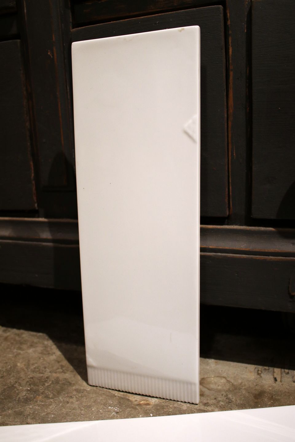 Royal Copenhagen Elements serving board in all white porcelain. Decoration number RC584. 2.sort. , older stamp produced in Denmark. Dimensions: 36cm. x 12.3cm. ( 6 pcs. in stock )