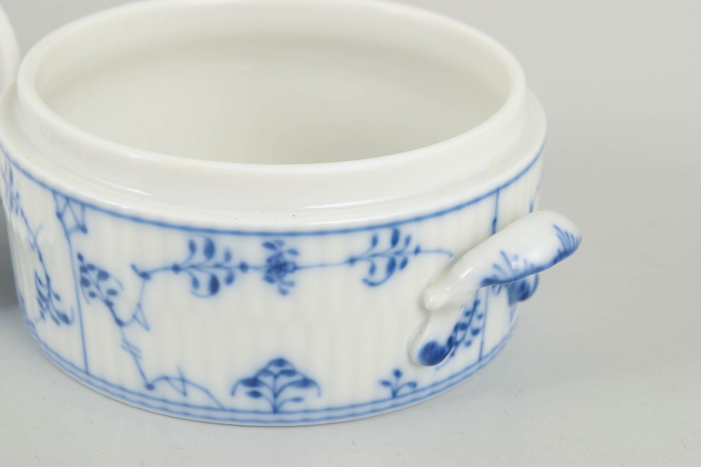 Royal Copenhagen, sugar bowl with lid and handles, Blue Fluted Plain. 1980s.