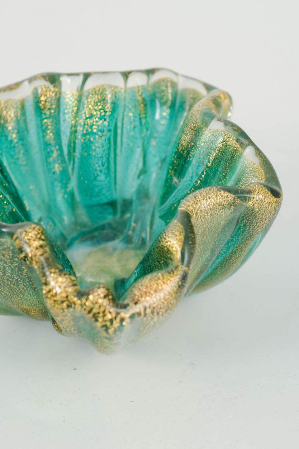 Murano has for centuries been the centre of Italian glassmaking and is renowned for its high level of craftsmanship and distinctive techniques. In the mid-20th century, Murano glass experienced a renewed creative flourishing, with organic forms, expressive colour combinations, and decorative effects such as golden inclusions used to create small artistic utilitarian and decorative objects with strong international appeal.