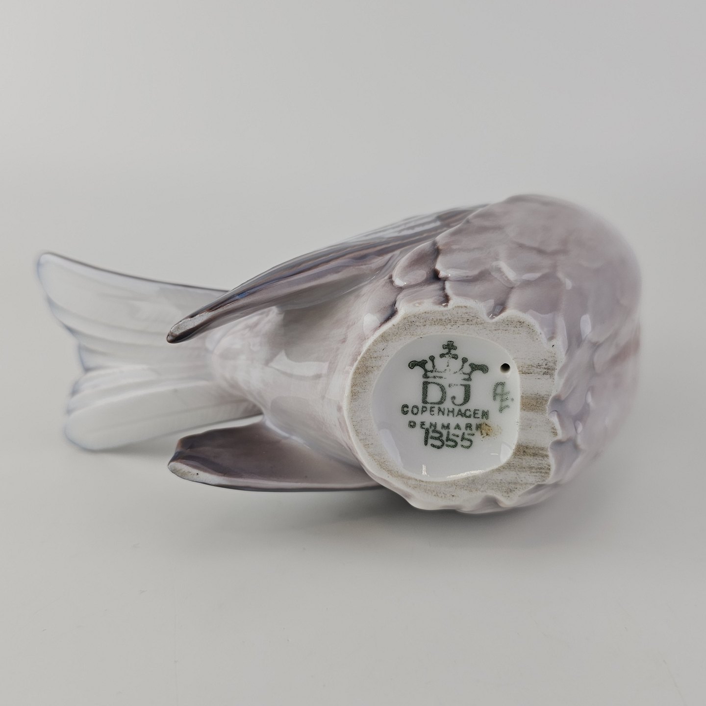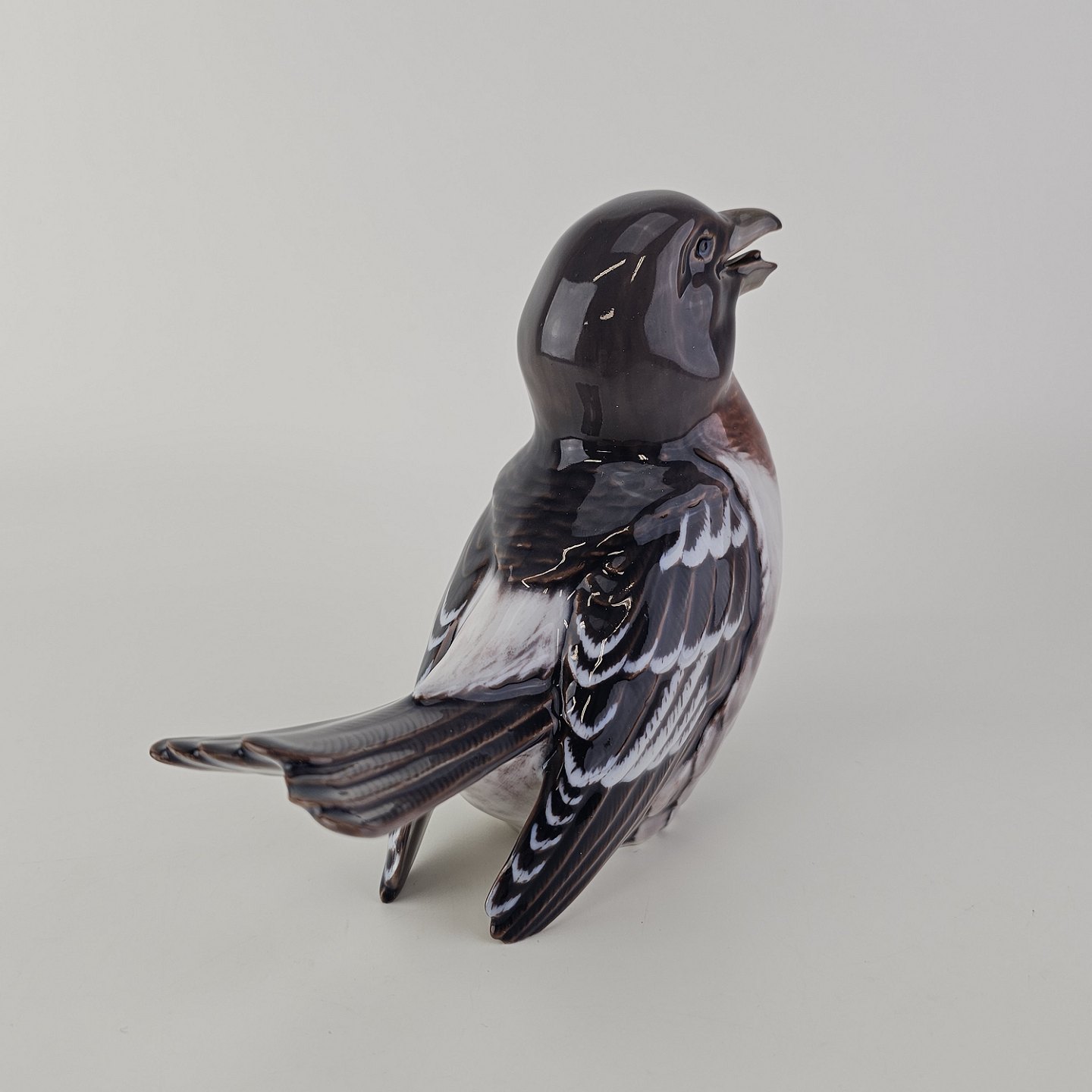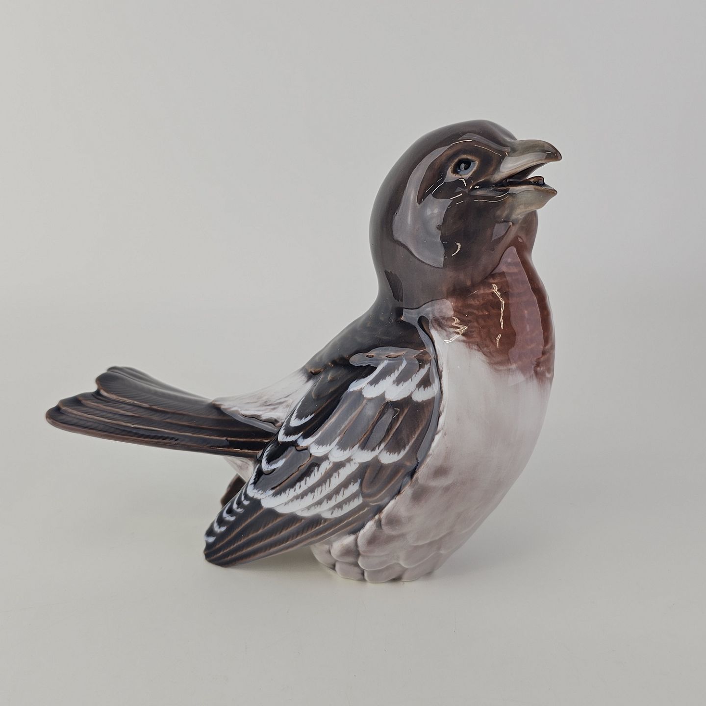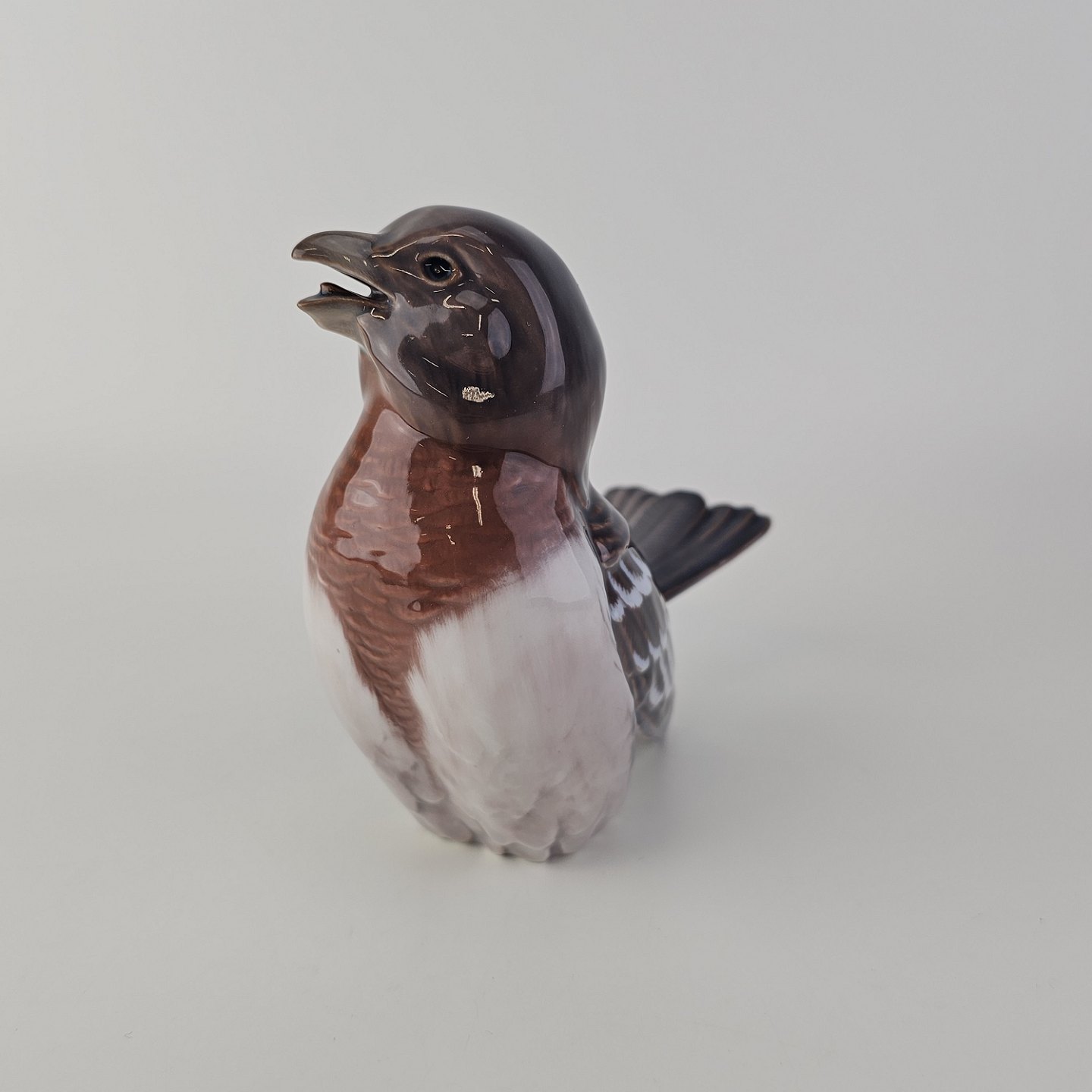 Figur i porcelæn med motiv af en fugl