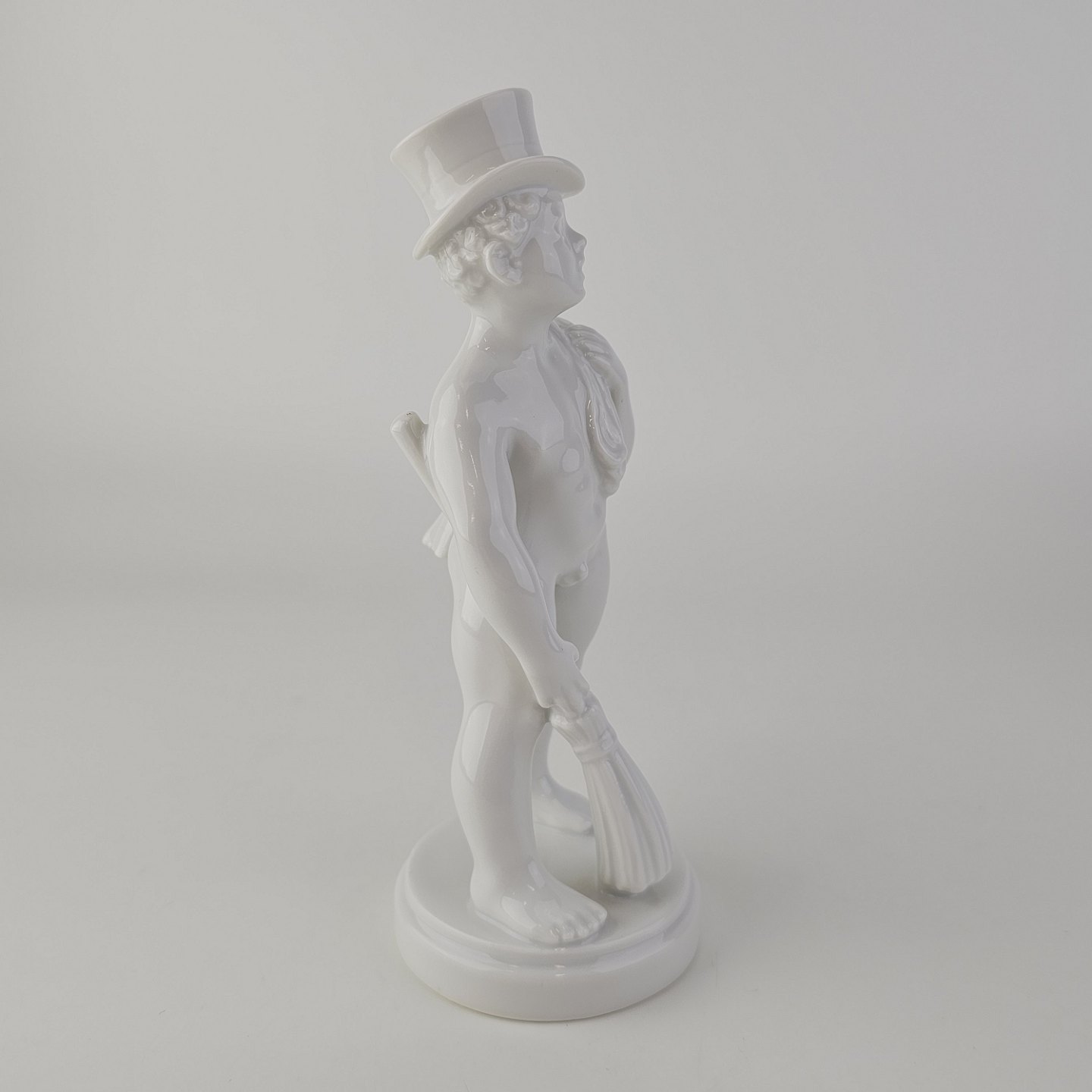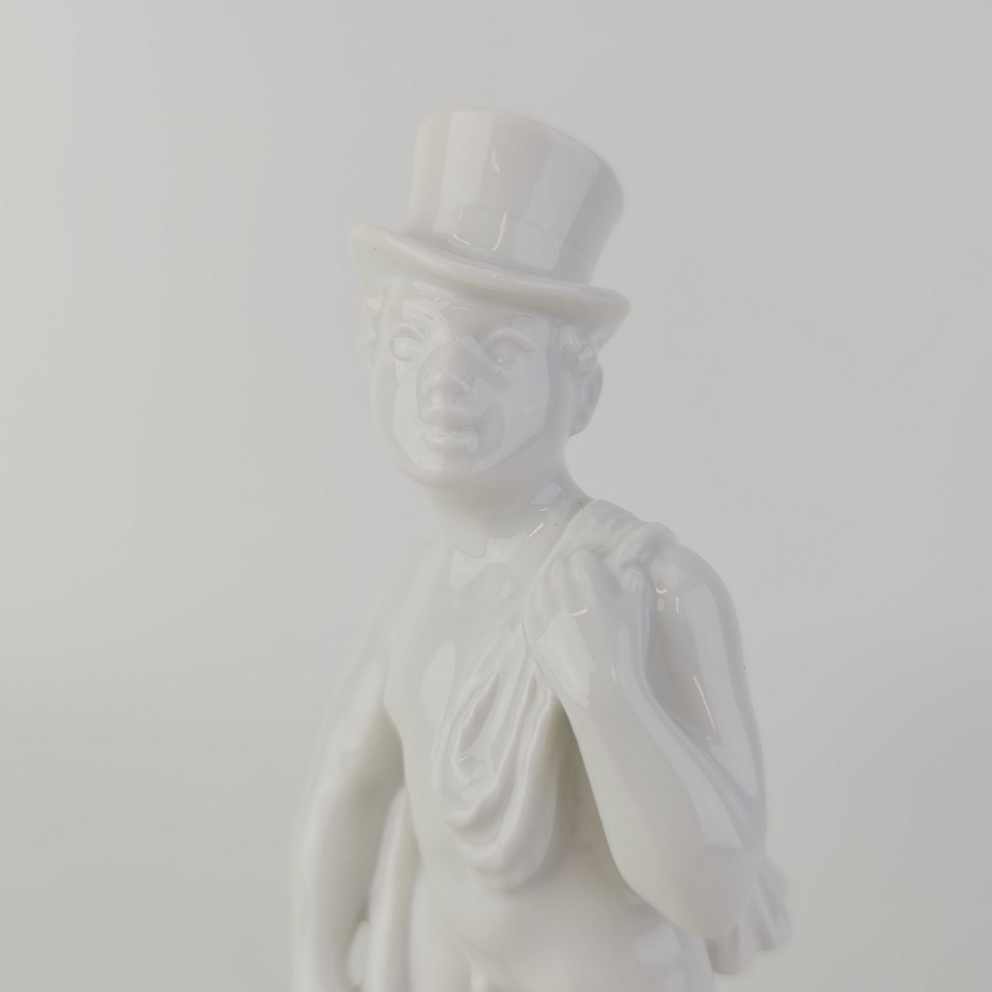 Figur i hvidt porcelæn med motiv af en skorstensfejer
