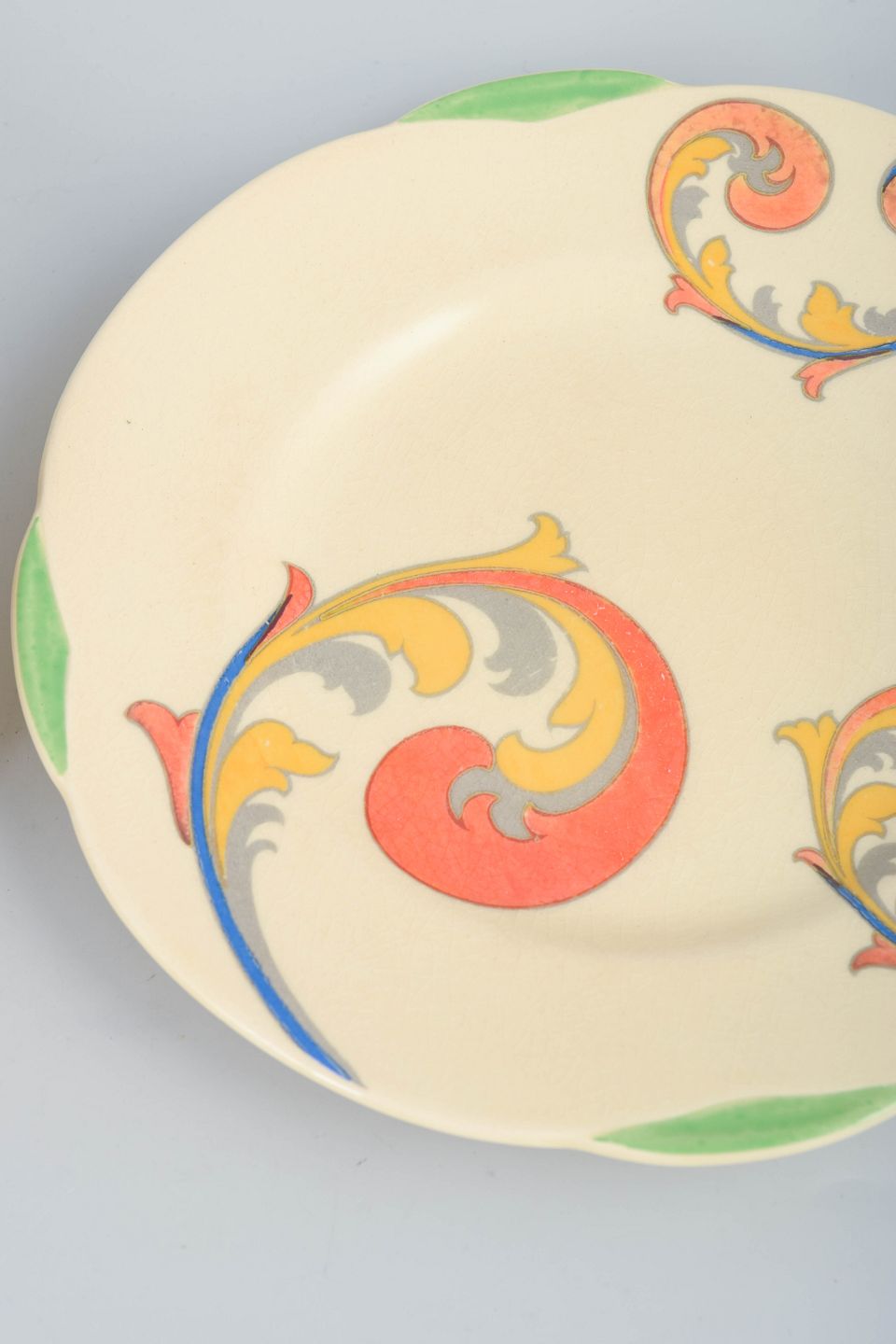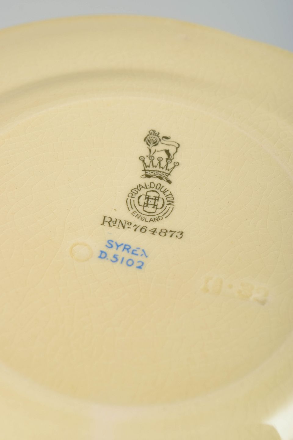 Clarice Cliff is regarded as one of the most influential figures in British Art Deco ceramics. Her work for Royal Doulton is defined by bold colour schemes, stylised natural motifs and a distinctly modern design language that set her apart from earlier, more traditional decoration. The “Syren” series exemplifies this decorative approach and is today highly sought after by collectors.