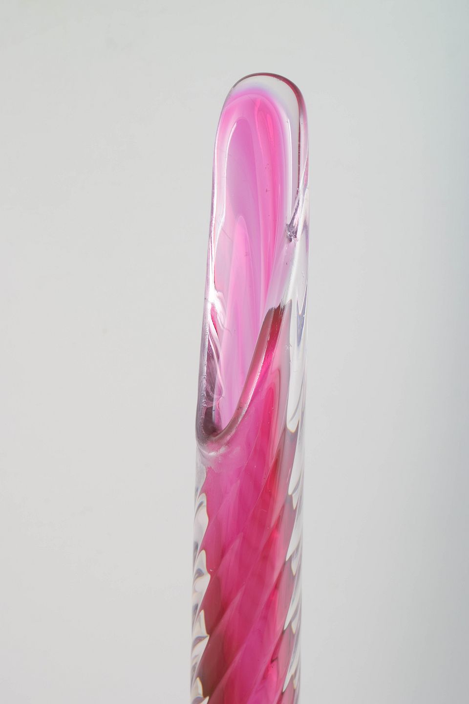 Murano glass is celebrated for its high level of craftsmanship and refined techniques, where form, colour and optical effects are often combined into sculptural expressions. In the 1960s and 70s, tall monumental vases became popular as statement interior pieces, designed to showcase the transparency of the glass and the dynamic, twisted patterns within the material.