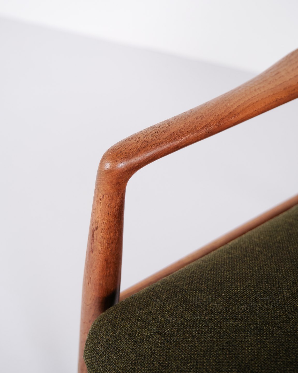 A Pair of Lounge Chairs With Stool - Teak - Green Fabric - Alf Svensson - Fritz Hansen - 1960s