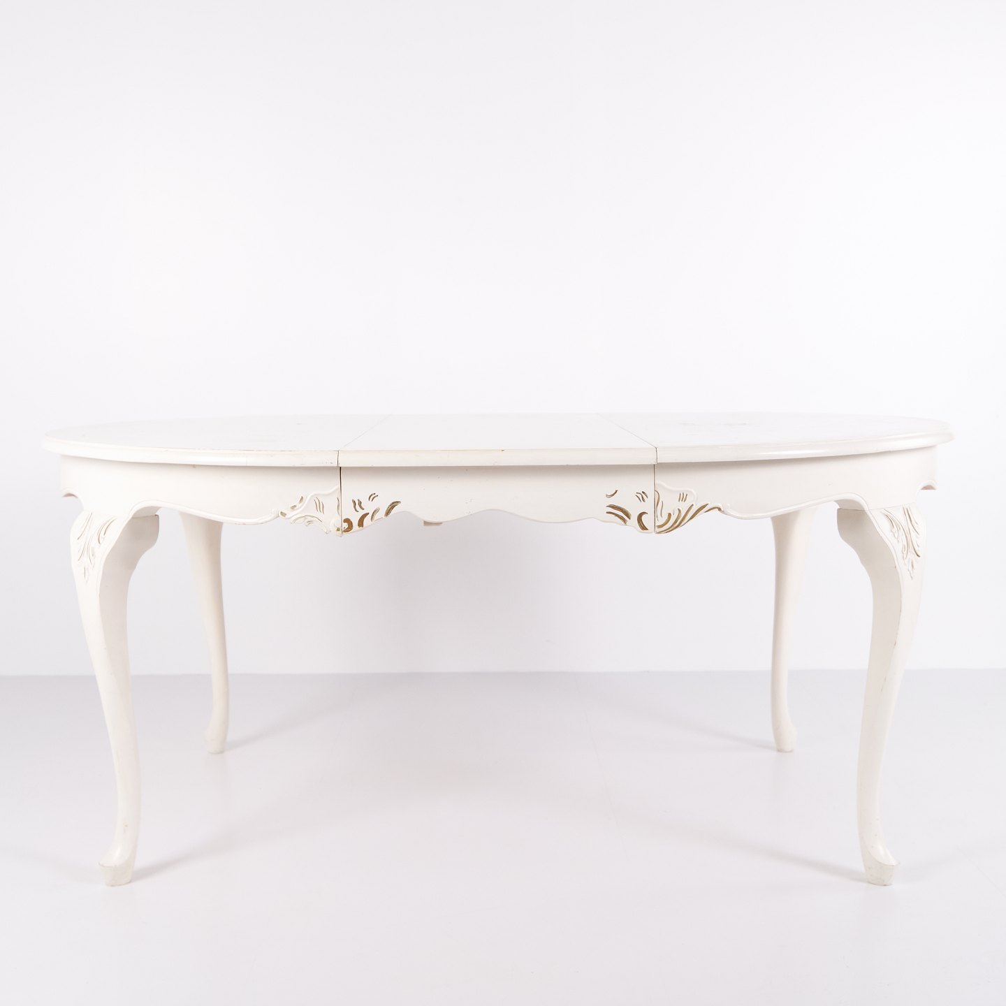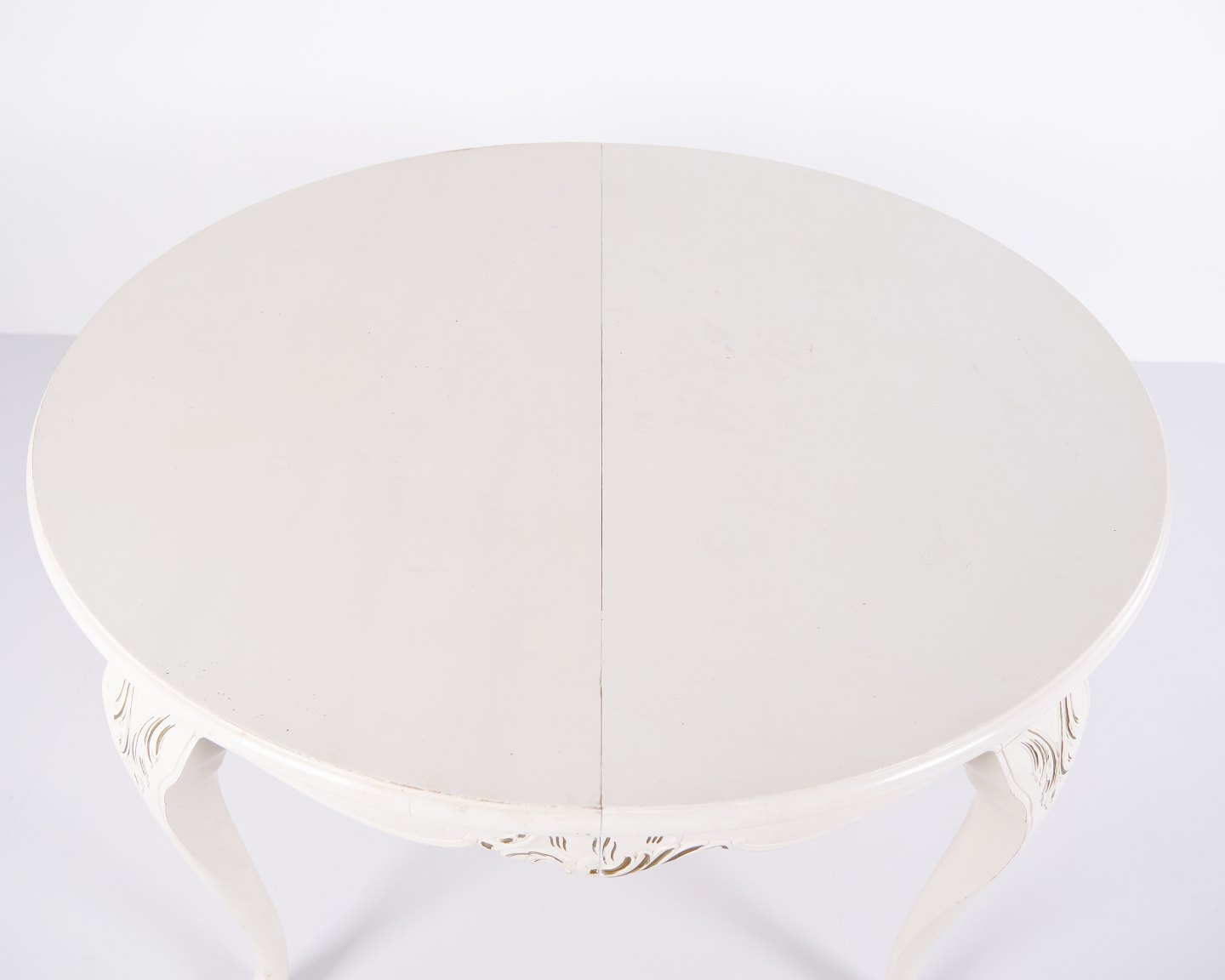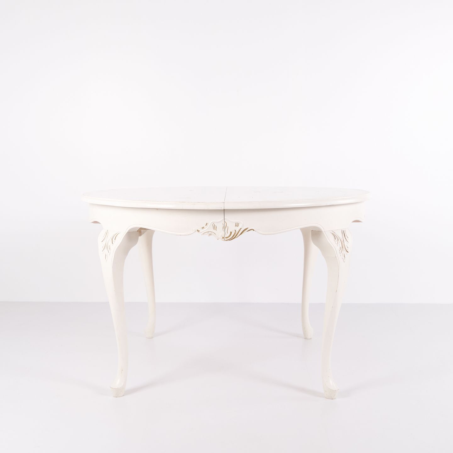 Antique Round Dining Table With Extension - Neo Rococo Style - White Painted With Decorative Details - 1920s