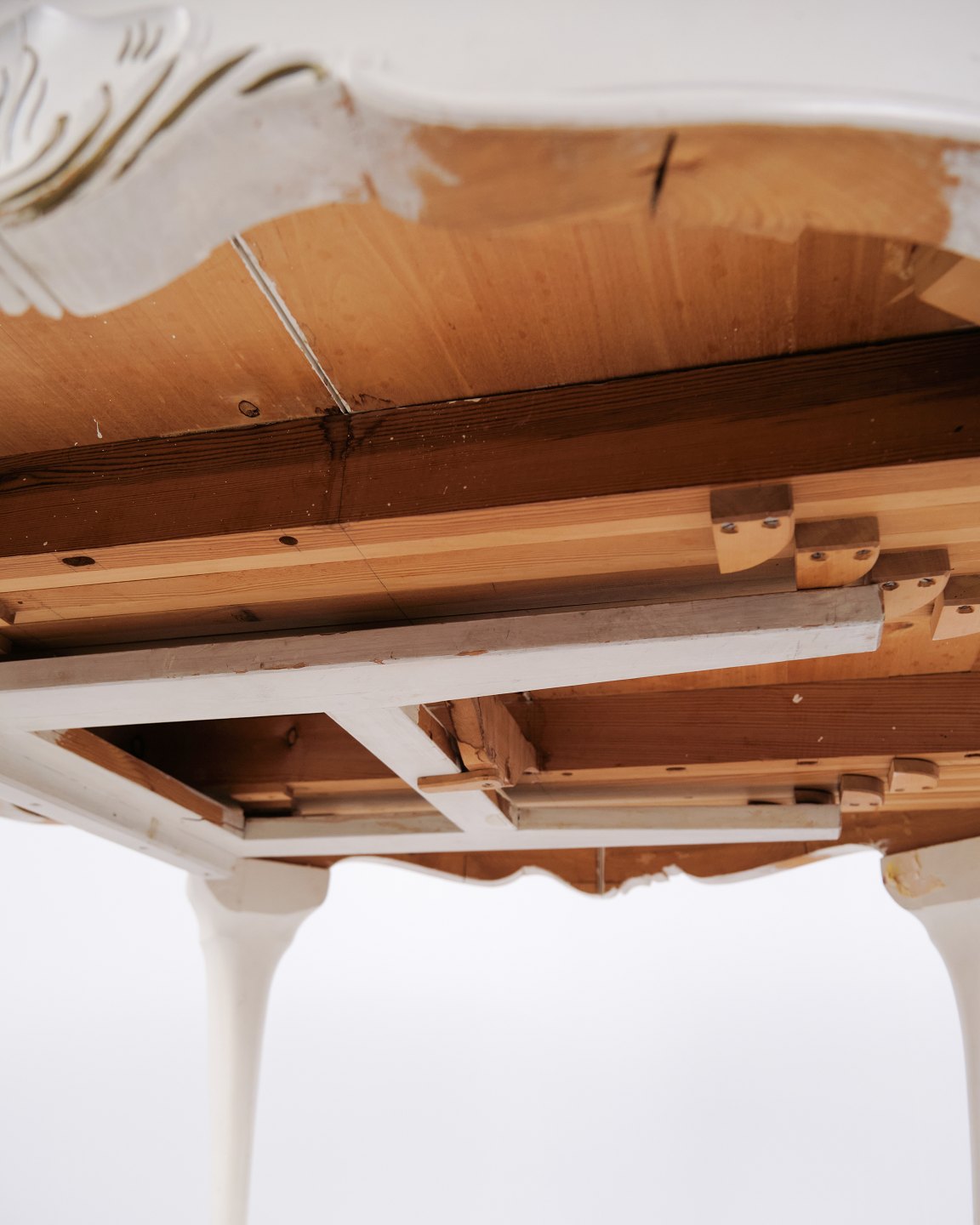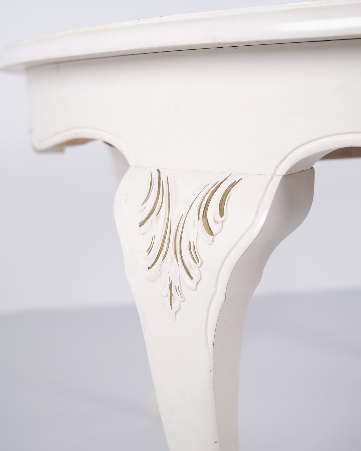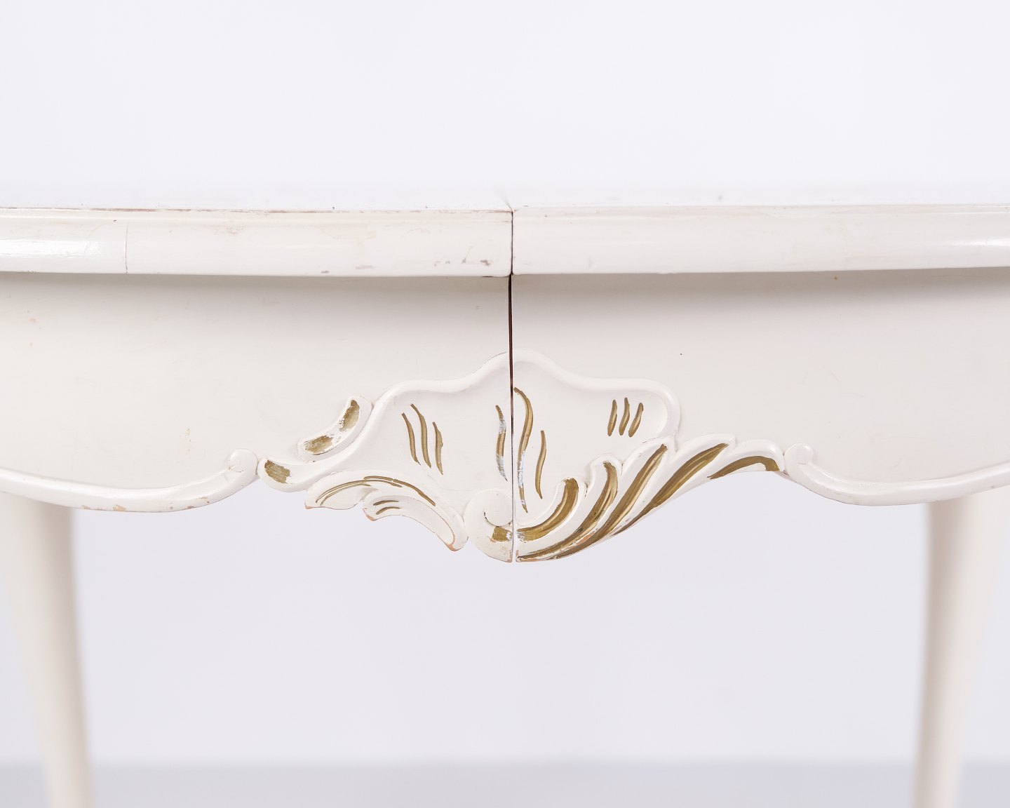Antique Round Dining Table With Extension - Neo Rococo Style - White Painted With Decorative Details - 1920s