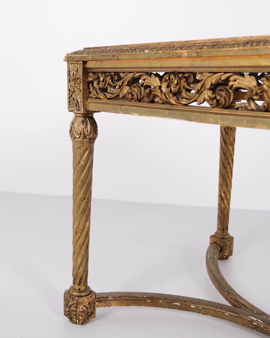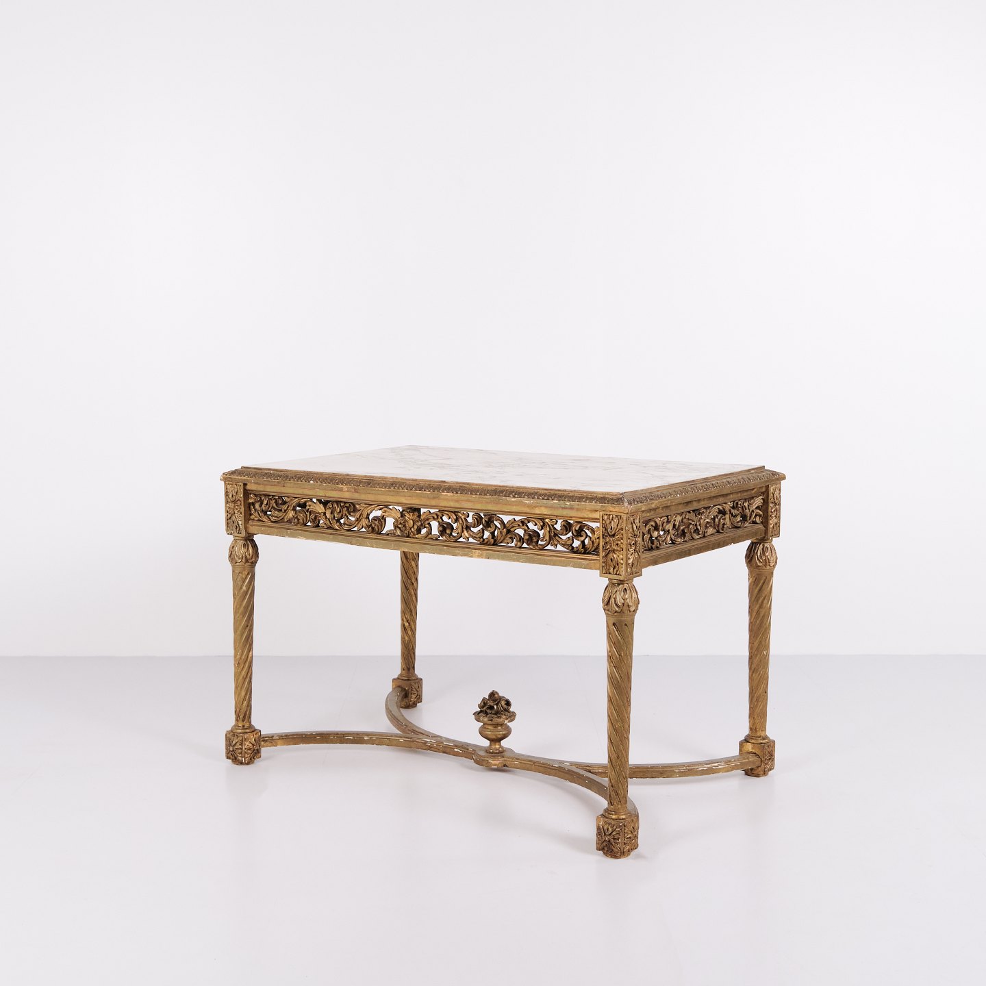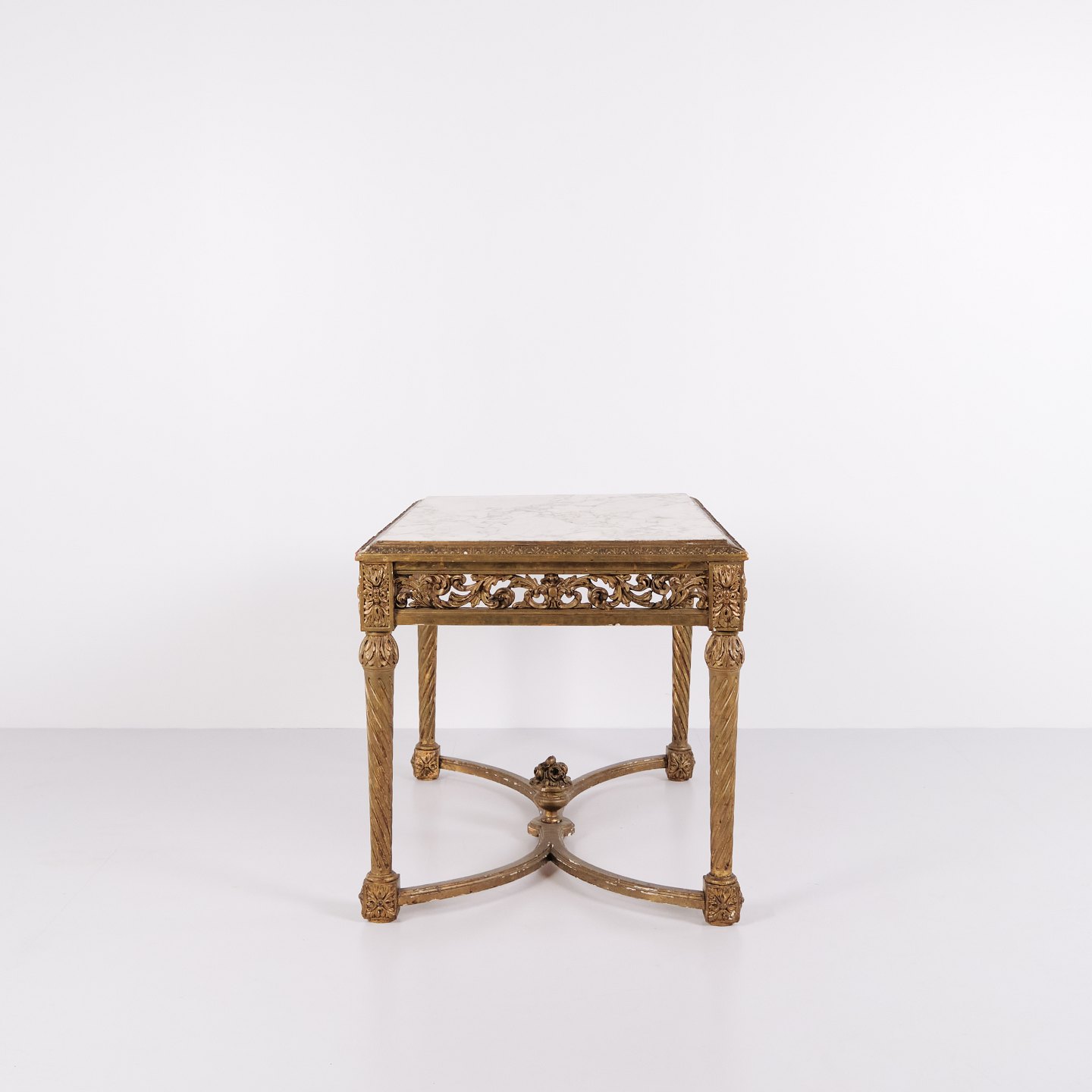 Antique Salon Table With Marble Top – Detailed Carvings – Gilded Wood – Louis XVI Style – 1850s