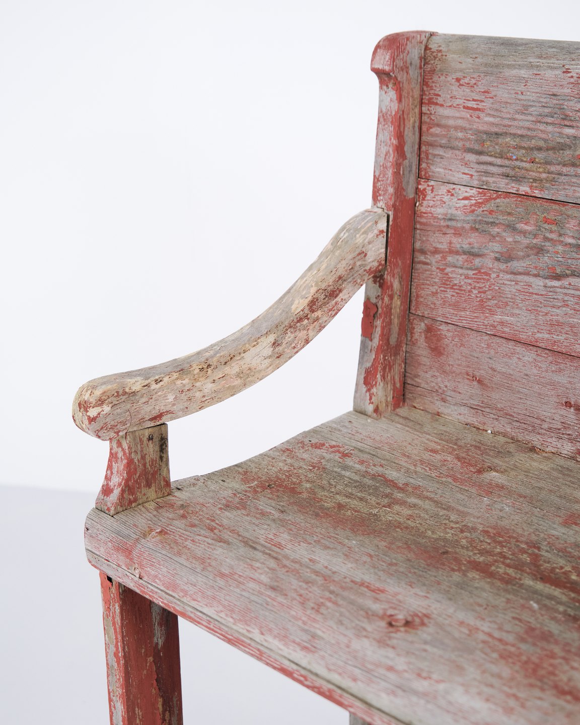 Antique bench from the 1860s in original red-painted pine wood. Antique red-painted bench from the 19th century.