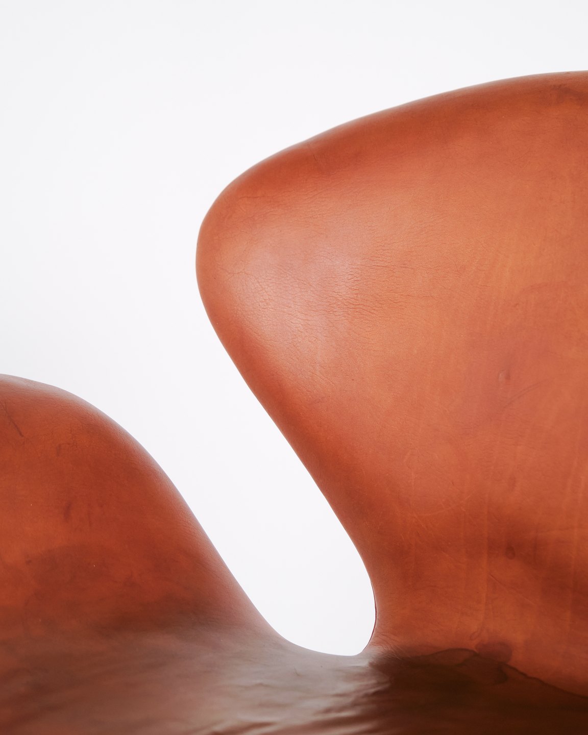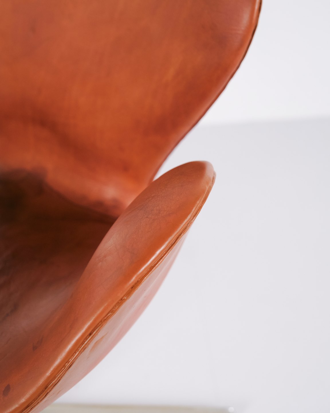 The Swan model 3320 by Arne Jacobsen for Fritz Hansen in original cognac leather from the 1960s. Iconic Danish design.