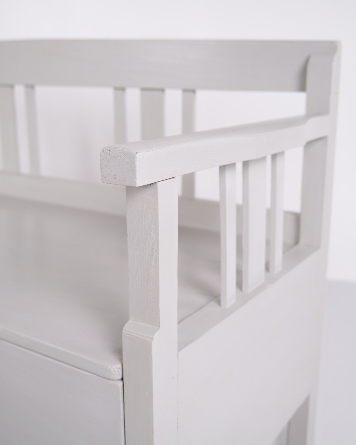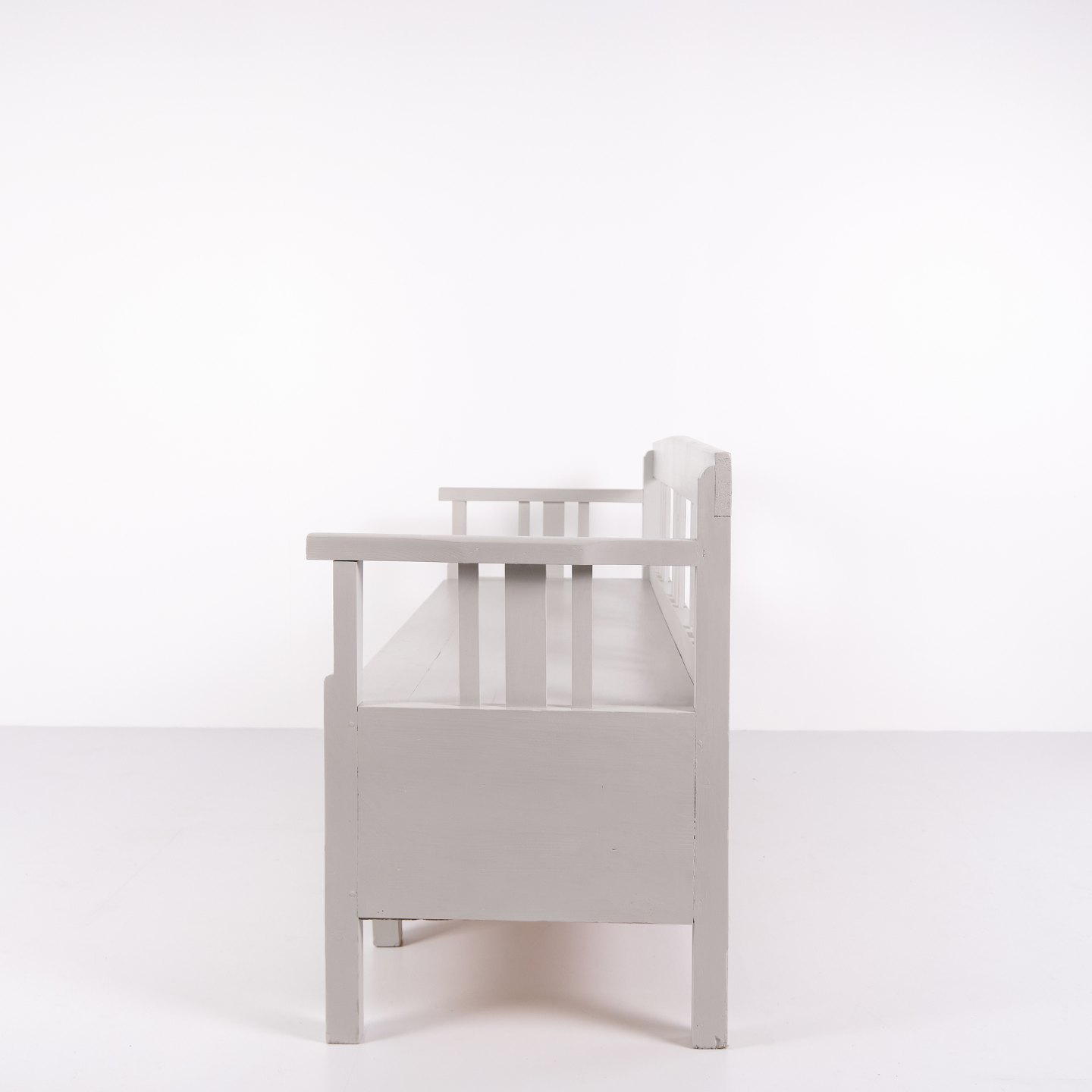 Antique Storage Bench – Grey Painted – Pine Wood – 1860s