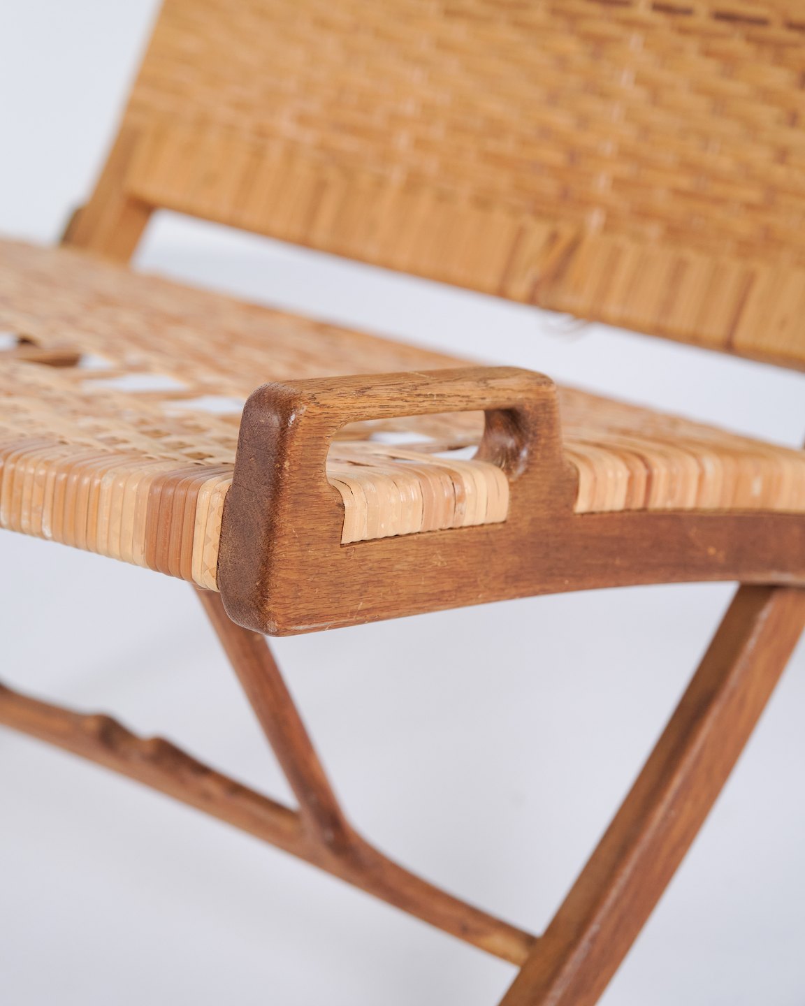Armchair / Folding Chair – Model JH 512 “The Fireplace Chair” – Patinated Oak – Original Cane – Hans J. Wegner – Johannes Hansen – 1950s