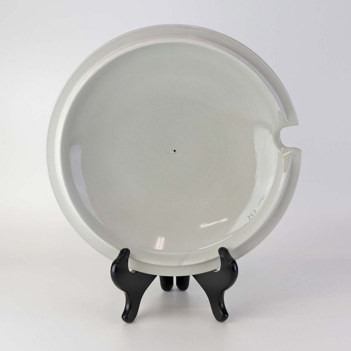 Fremstår med mindre mørkninger enkelte steder på glasuren på indvendig side samt mindre ujævnhed ved topkanten.