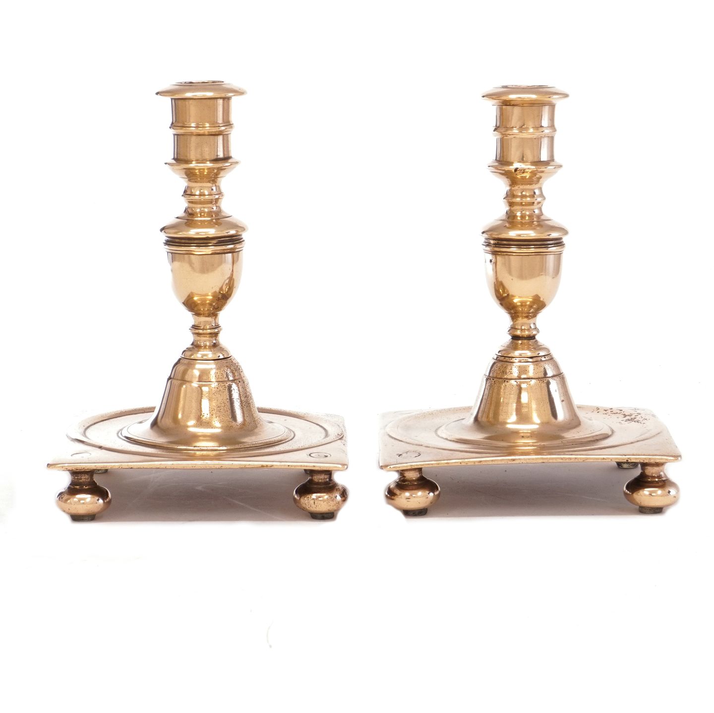 Pair of Danish Baroque "castle"-candlesticks. Denmark circa 1750. H: 22cm