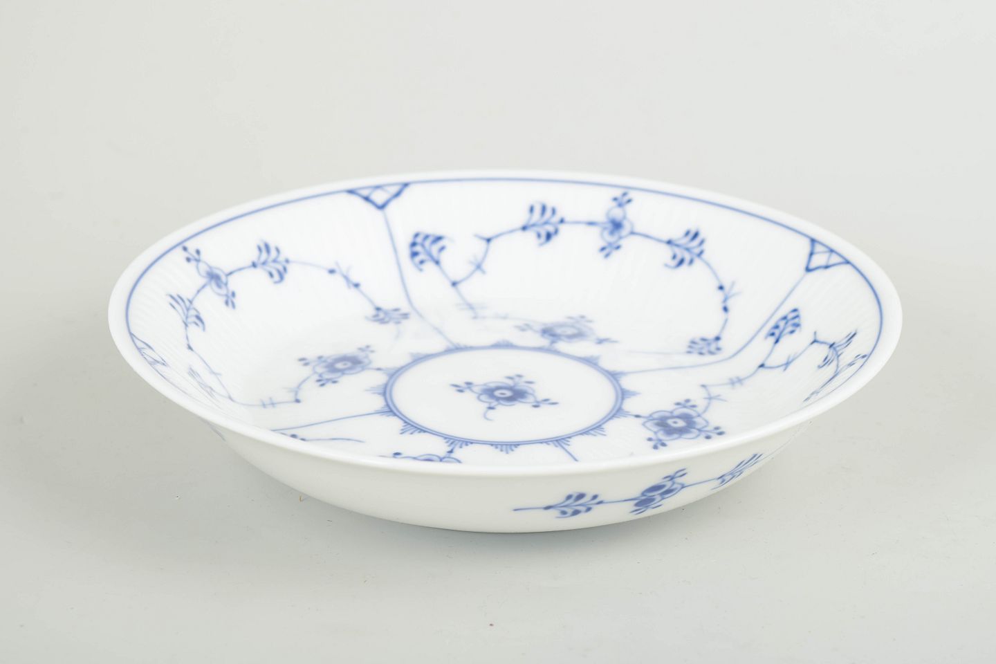 Blue Fluted Plain is Royal Copenhagen’s oldest pattern, first introduced in 1775. Inspired by Chinese porcelain, the decoration is executed in freehand-painted cobalt blue underglaze, giving each piece subtle individual variation. Plates produced around the 1910s represent a continuation of traditional forms made for everyday use, distinguished by refined craftsmanship and enduring quality.