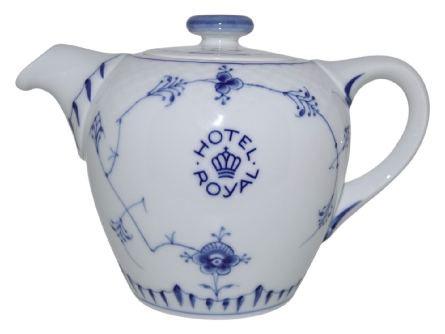 Bing & Grondahl Blue Traditional / Blue Fluted Thick porcelain, small teapot with logo fra Hotel Royal.