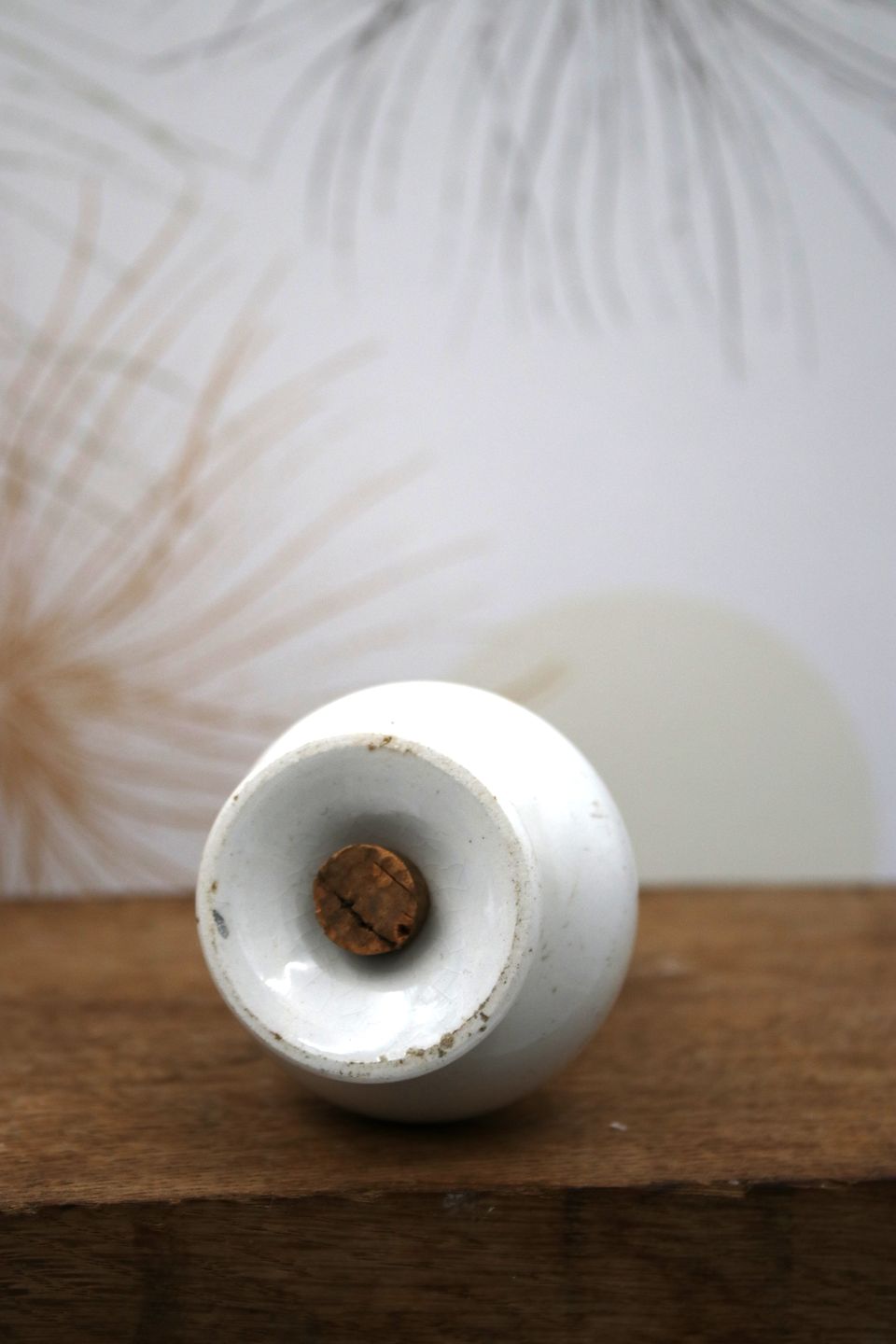 Old salt shaker in cream-colored earthenware with a fine patina.