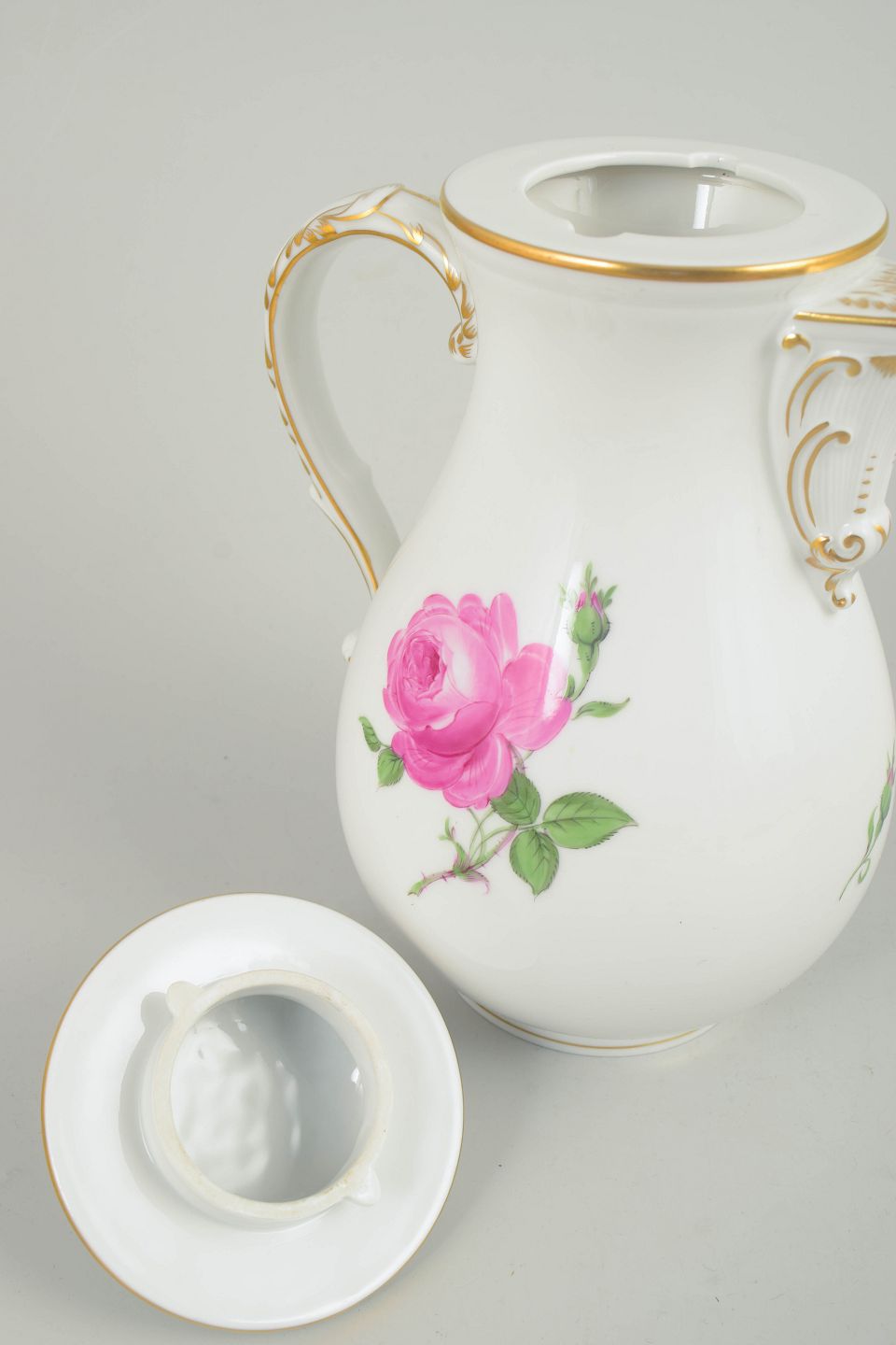 Since the early 18th century, Meissen has been among the most influential European porcelain manufactories. The factory is especially renowned for its refined floral decoration and confident use of gilding. The Pink flower series reflects the classical Meissen tradition of naturalistic hand-painted flowers, which was particularly popular around the turn of the 20th century.