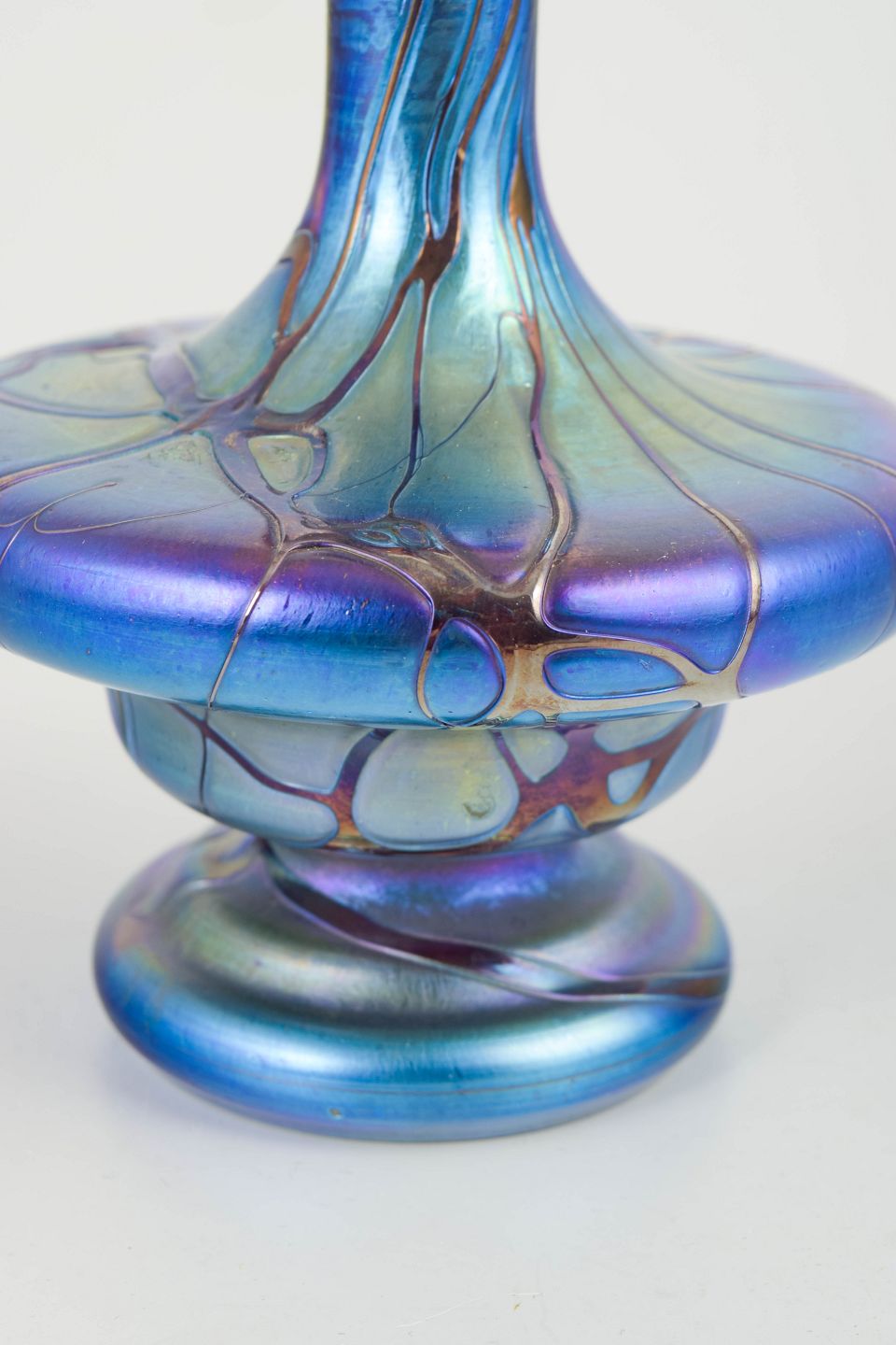 Johann Lötz Witwe was among the most important makers of Art Nouveau art glass in Bohemia around 1900. The workshop is particularly recognised for sophisticated iridescent finishes and organic decorative effects that exploit depth, light, and shifting colour. Vases from this period were often conceived as sculptural objects, where form and surface work together to create a distinctly period expression.