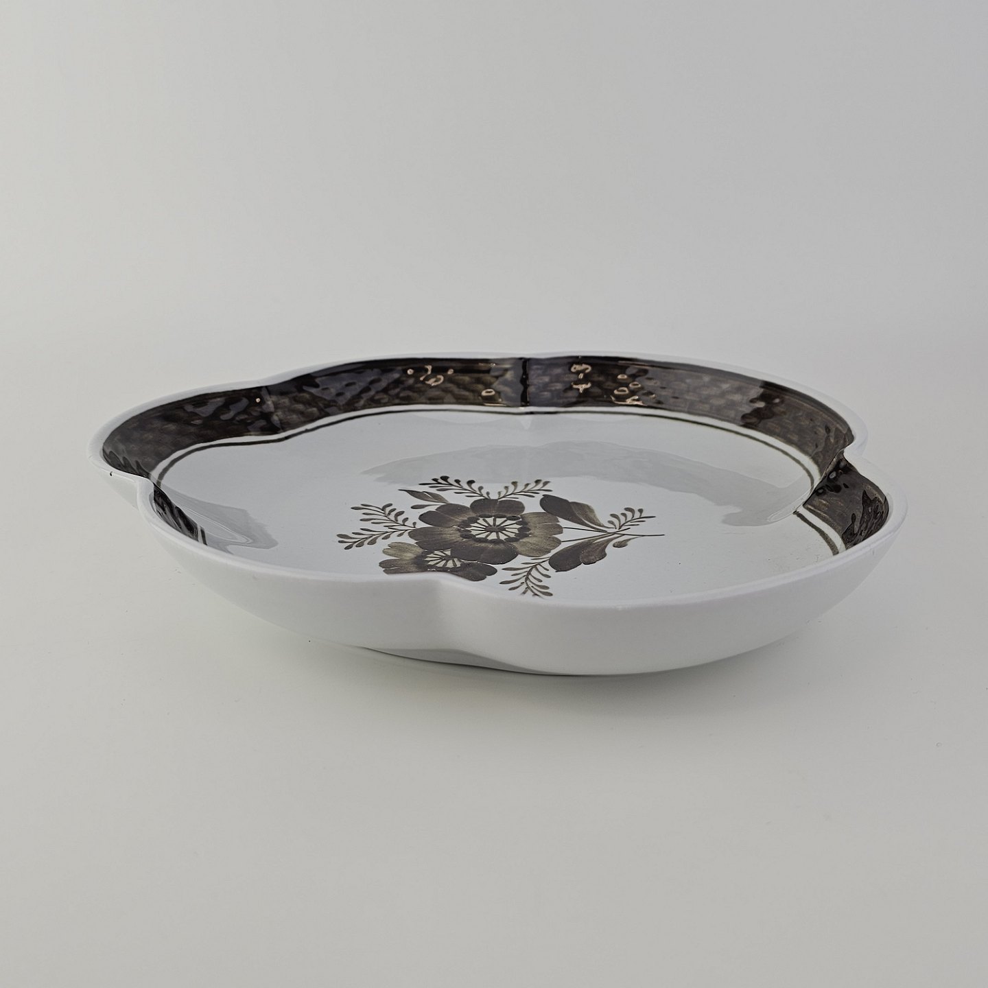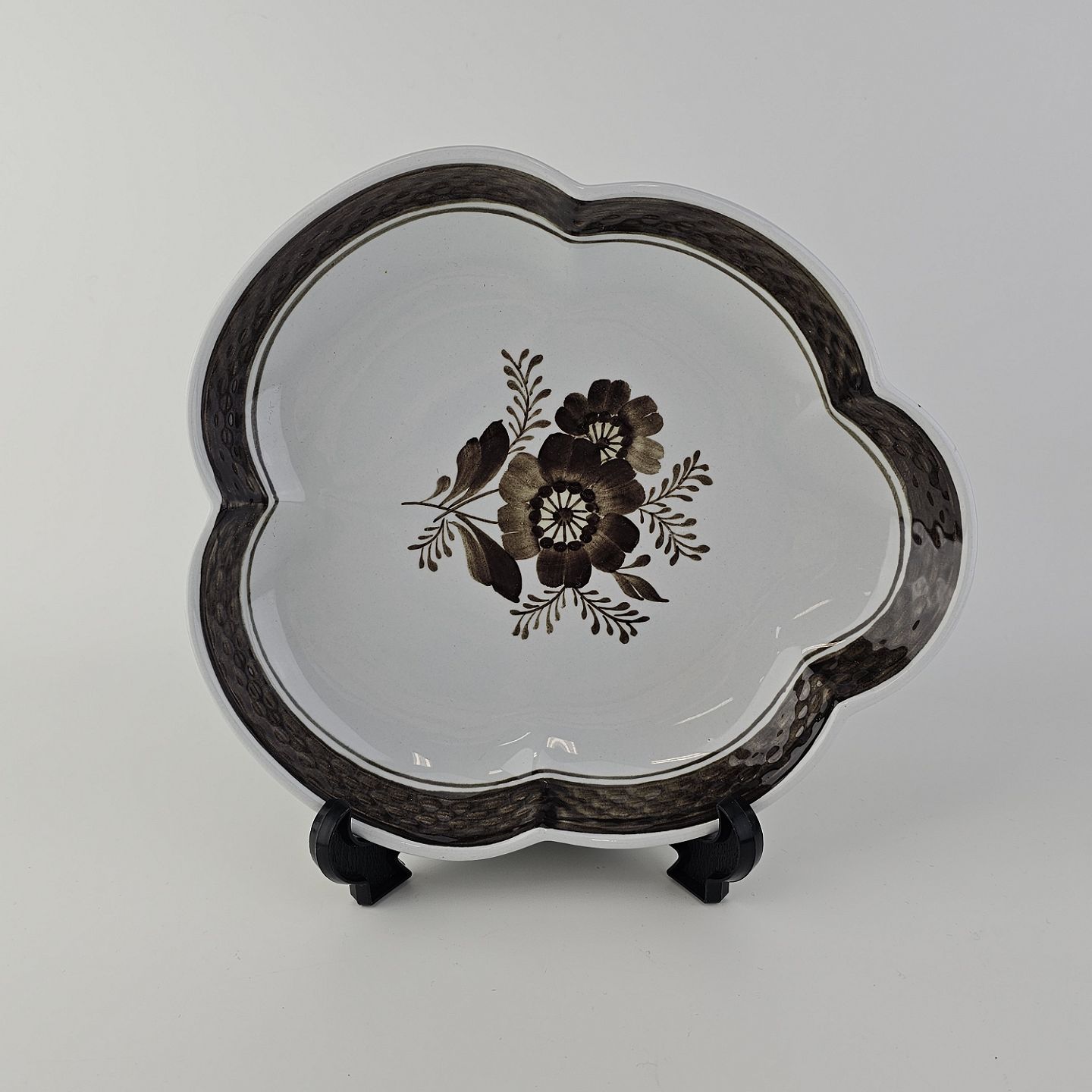 Fad med rundede kanter i fajance fra stellet Brun Tranquebar fra år 1919