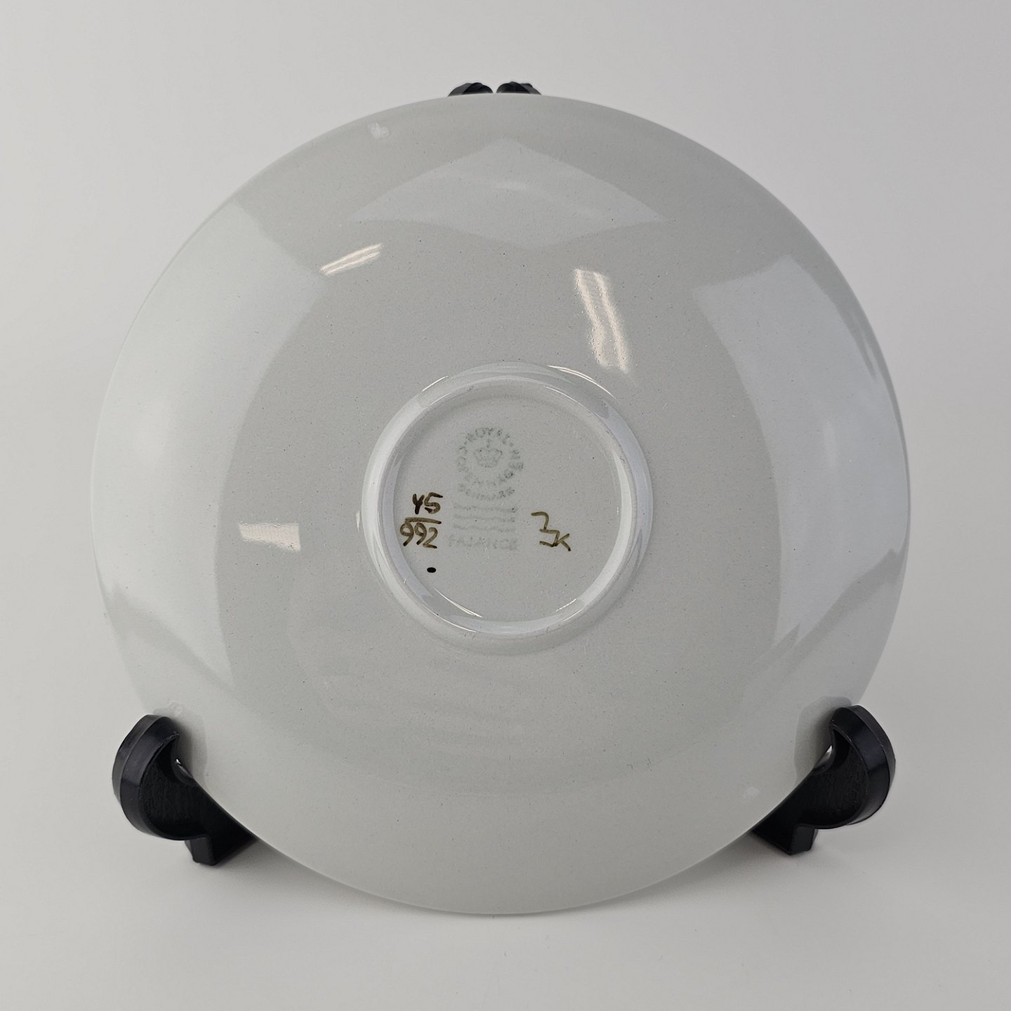 Fajancestellet med flettet kant og dekoration af brune blomster på lys baggrund med brun kant
