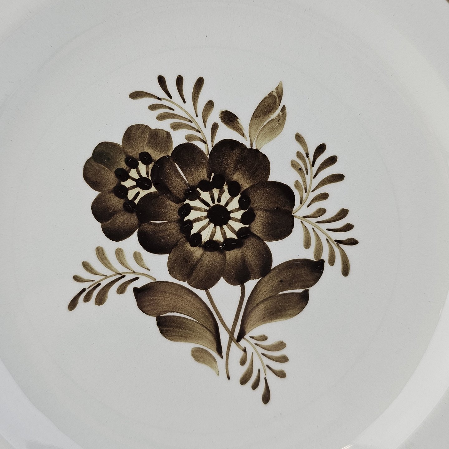 Desserttallerken i fajance fra stellet Brun Tranquebar fra år 1919