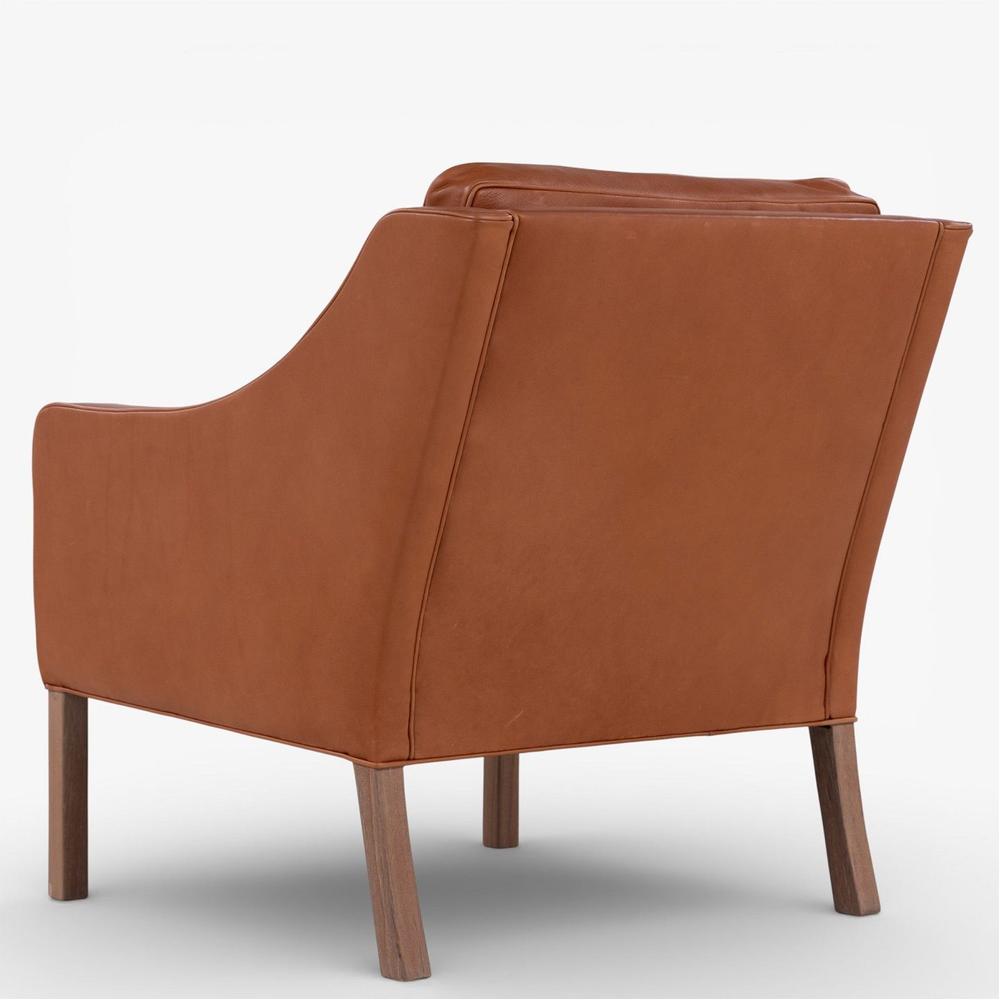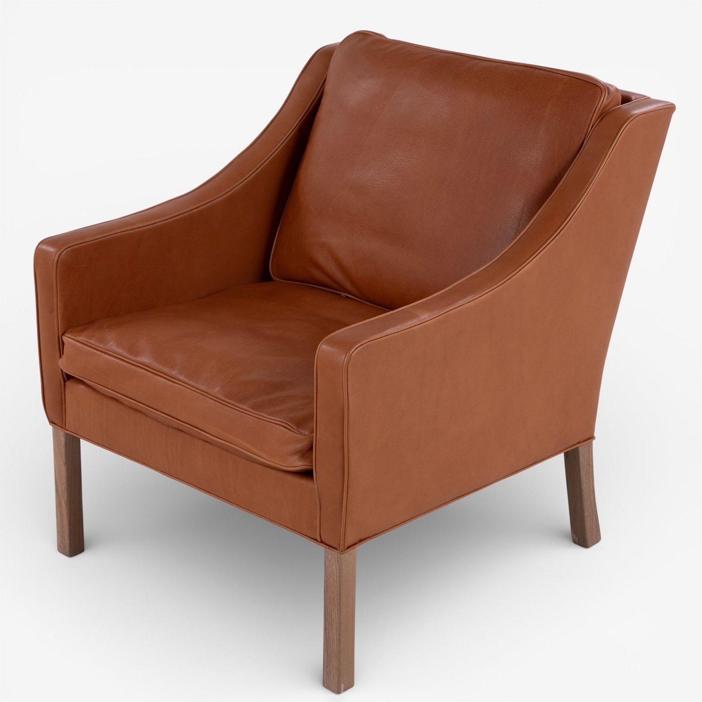 BM 2207 - Newly upholstered armchair in cognac-colored aniline leather with white oiled legs.