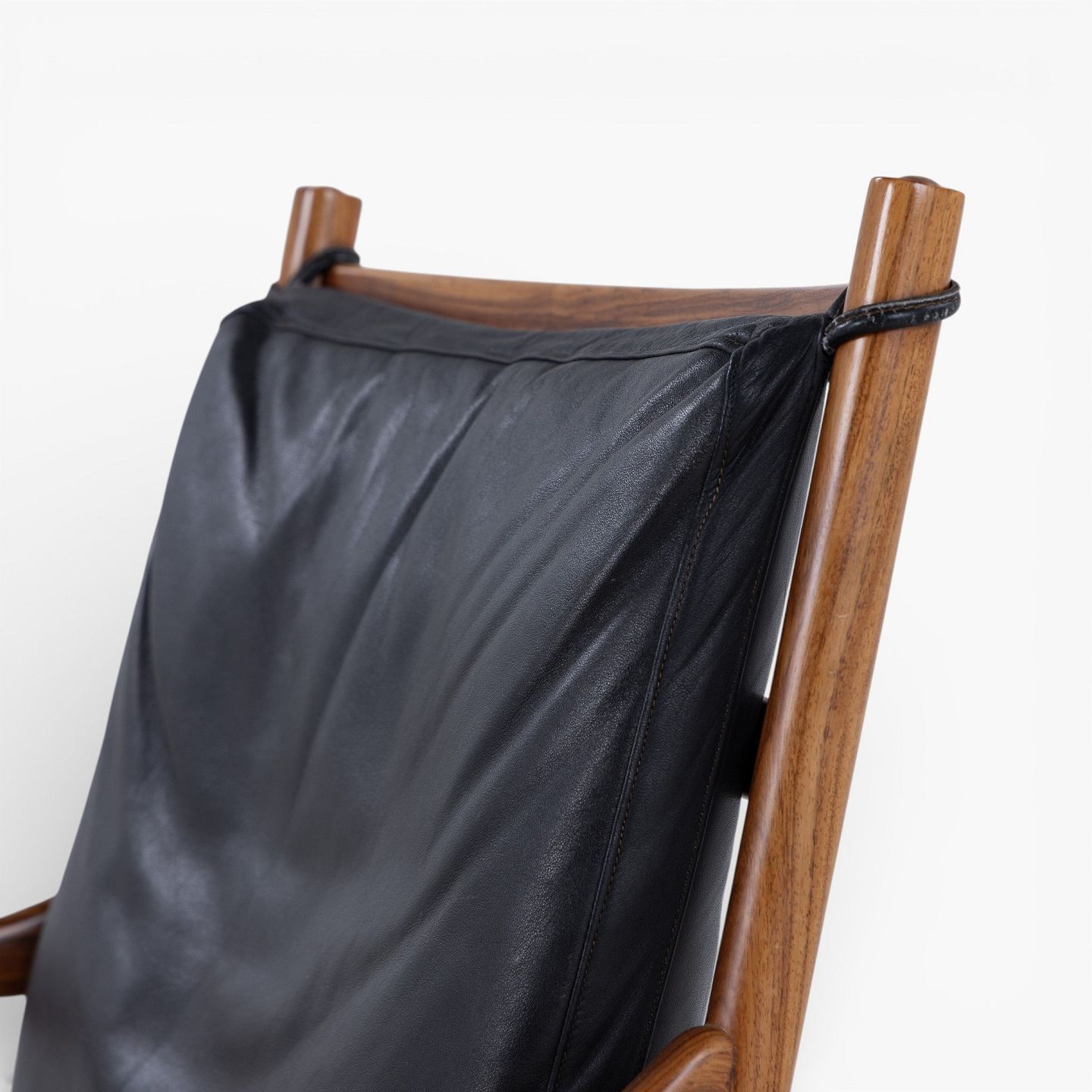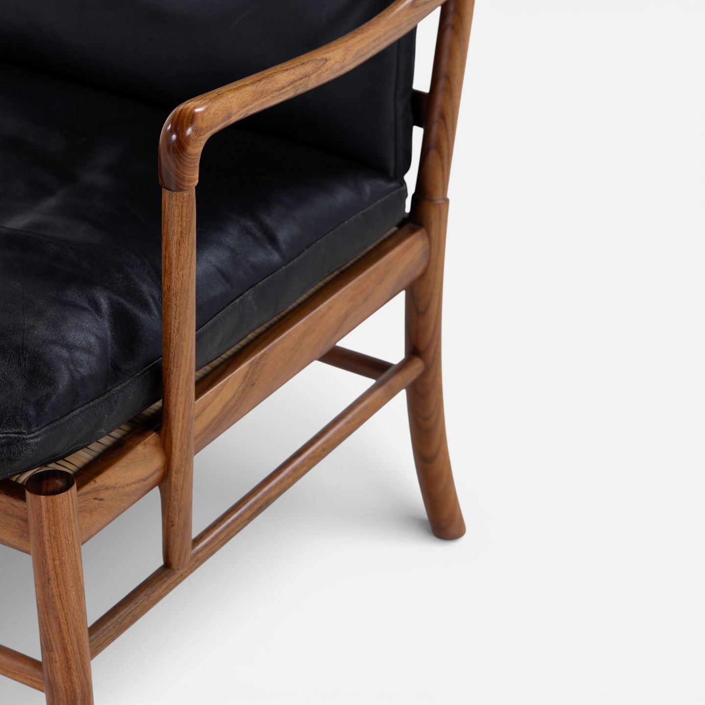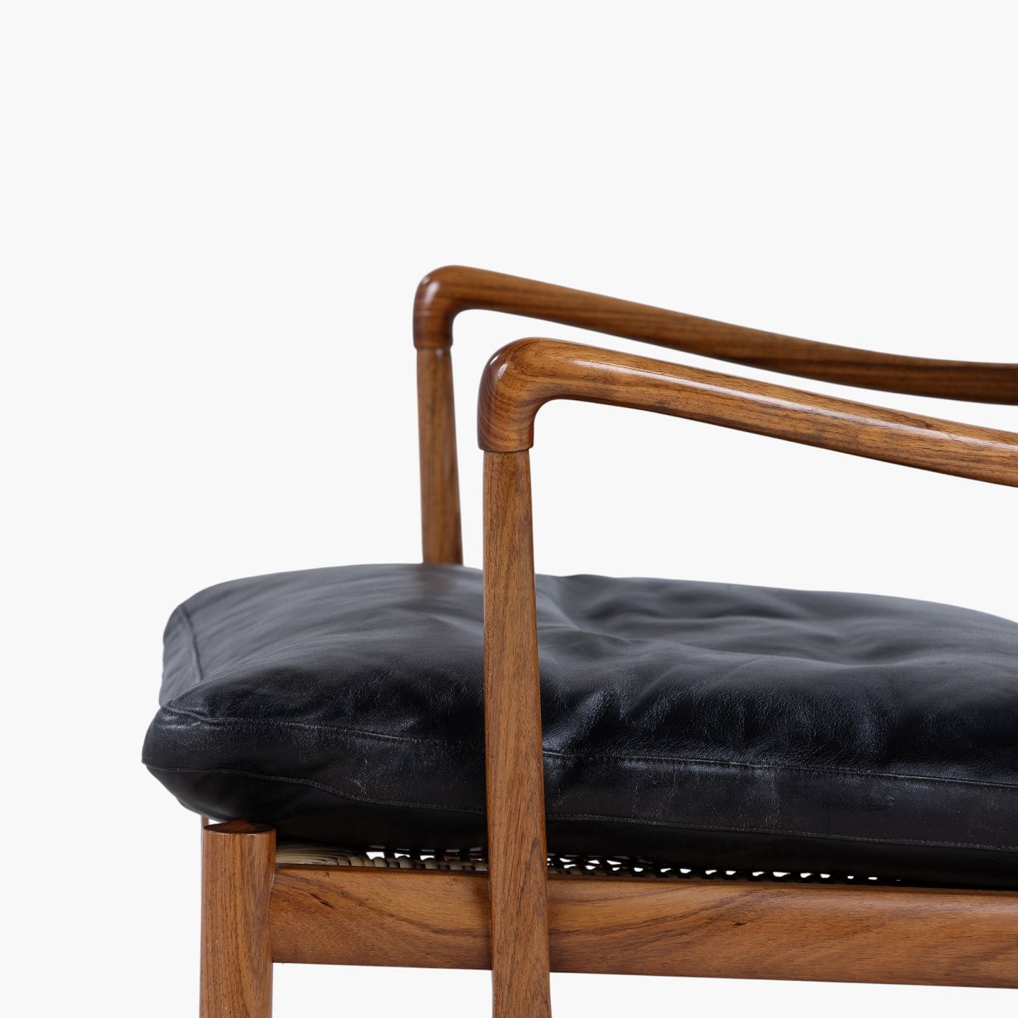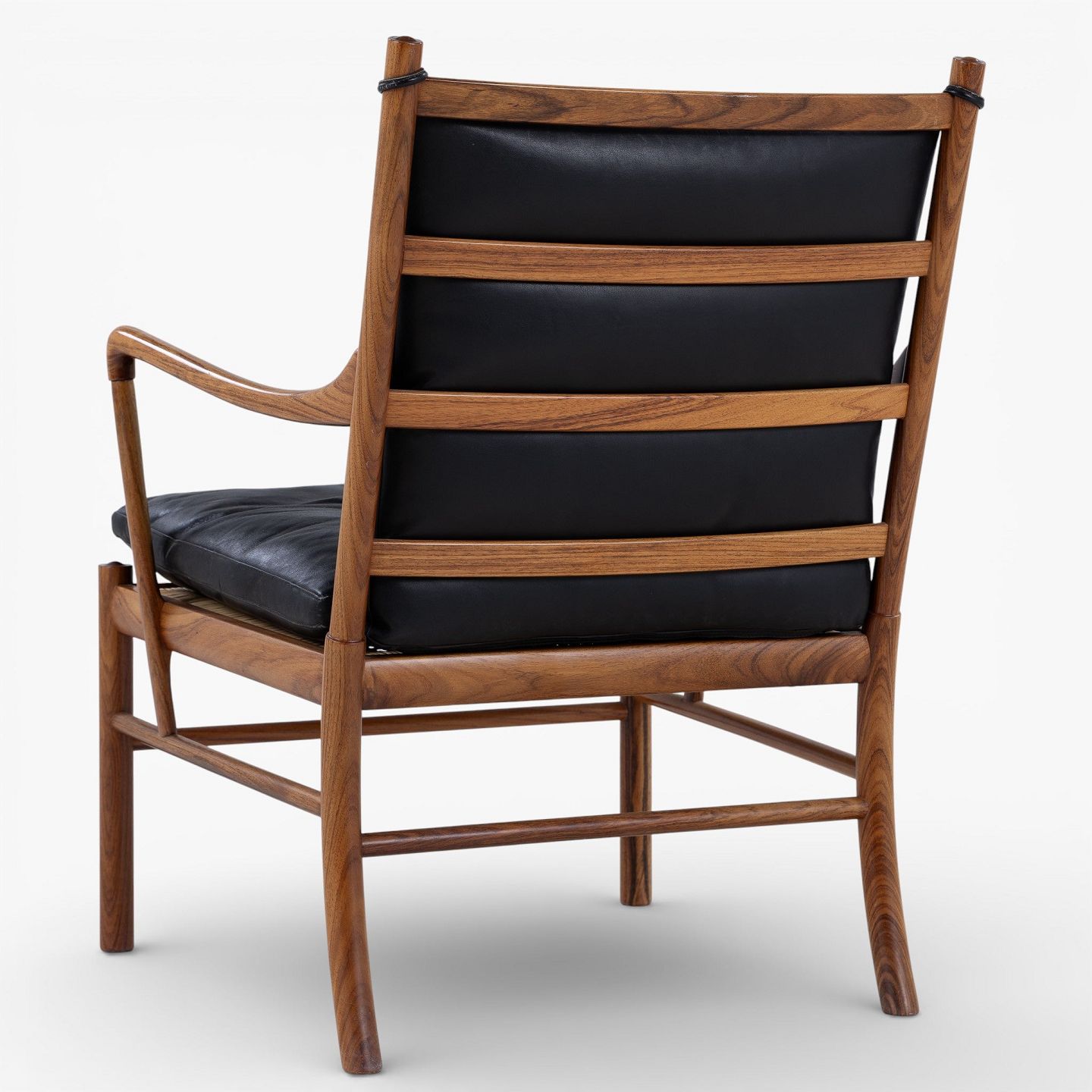 PJ 149 - 'Colonial Chair' armchair in rosewood with cushions in patinated black leather. Manufacturer's mark.